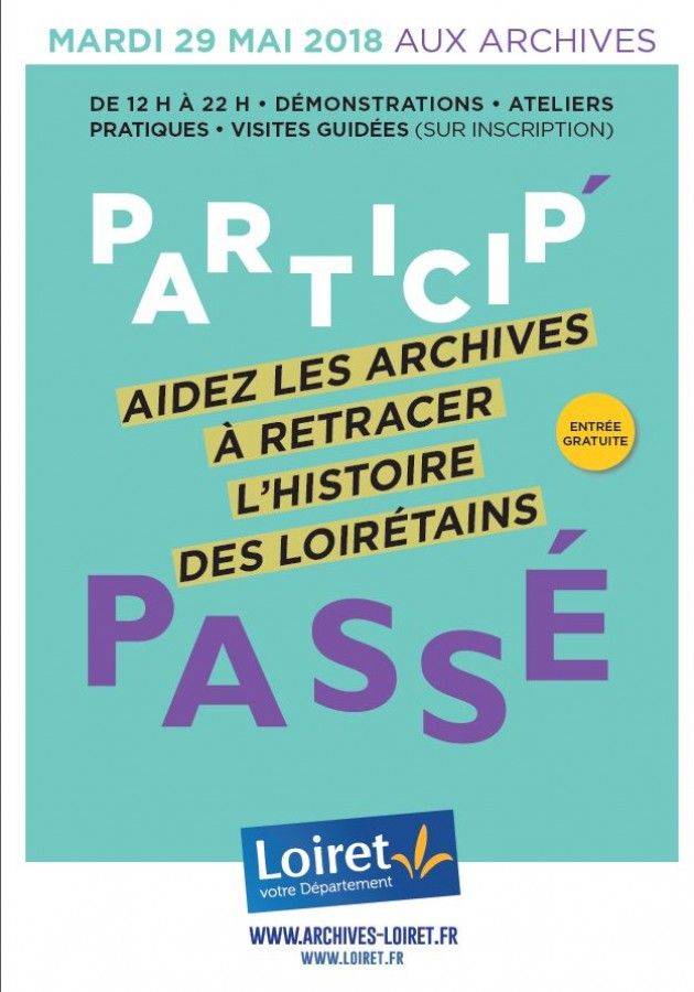 La journée "Particip'Passé" est organisée par le Département du Loiret. Elle se déroule sur le site des Archives départementales du Loiret (6 rue d'Illiers, 45000 Orléans).