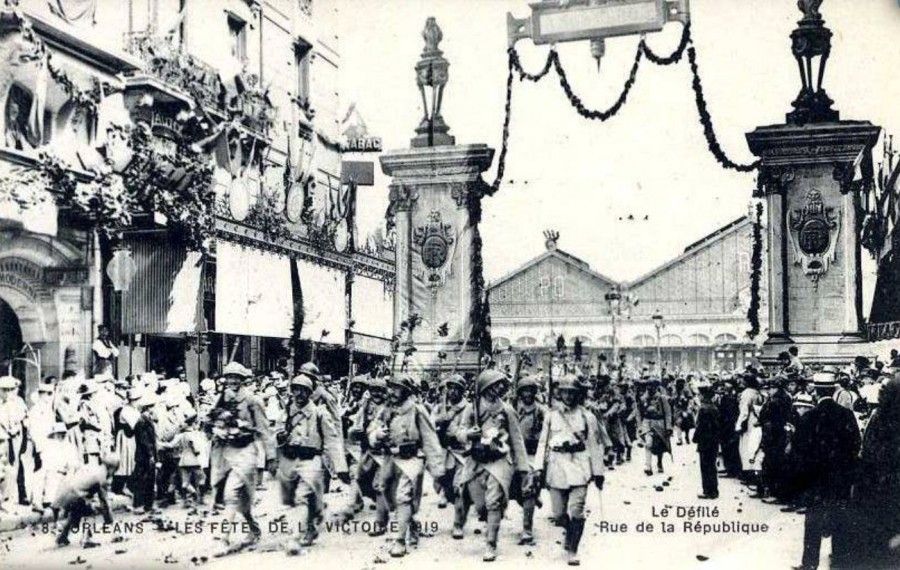 La Première Guerre mondiale s'achève par l'Armistice du 11 novembre 1918 puis plus officiellement, le 28 juin 1919 avec la signature du Traité de Versailles. Les troupes sont progressivement démobilisées entre novembre 1918 et juin 1920. Le 14 juillet 1919 est la date choisie pour organiser une manifestation nationale "Les Fêtes de la Victoire". A Orléans, les Fêtes de la Victoire se dérouleront effectivement le 14 juillet mais seront également célébrées le 3 août suivi à l'occasion du retour des régiments orléanais dans leurs casernes.