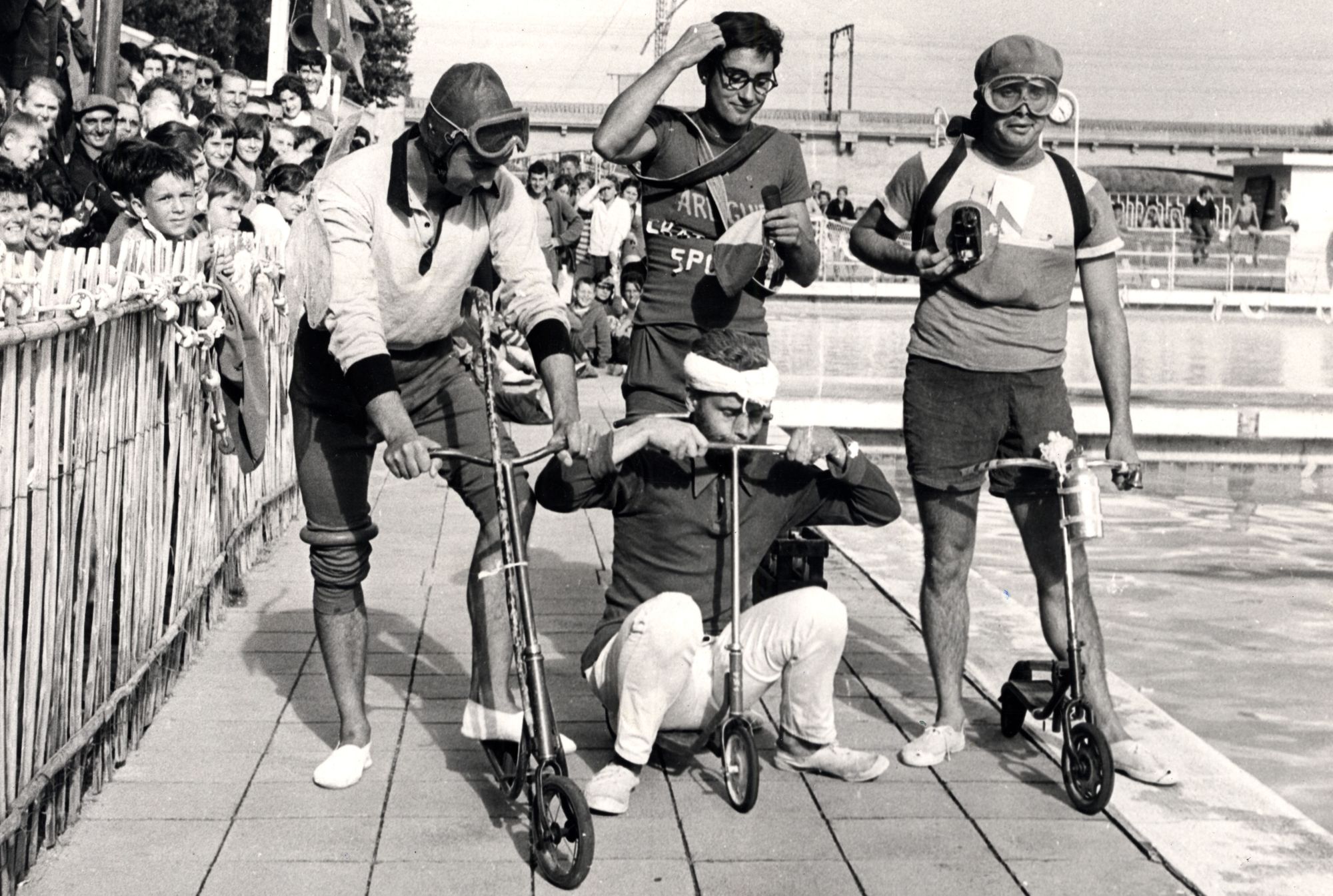 Cantine scolaire non identifiée d'Orléans, réfectoire des maternelles : cliché des enfants et d'une cantinière à une table. Vers 1939. Photographie Georges Martin. Cote : 3Fi151