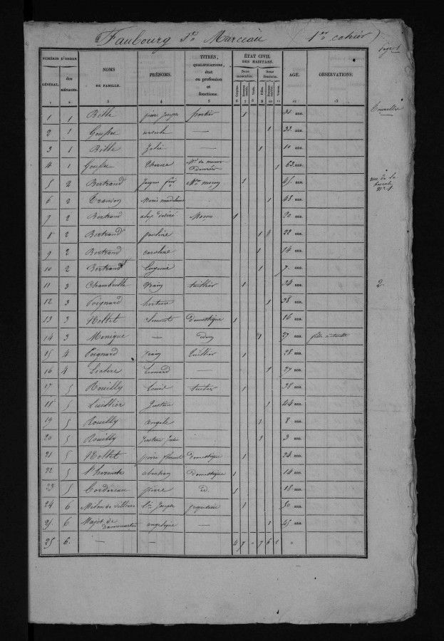 - la position dans la famille (chef, épouse, fils, fille, domestique) est notée dès le début des années 1880