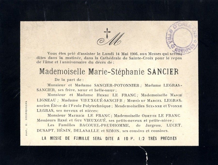 Si vous possédez des faire-part qui concernent Orléans ou des familles orléanaises et dont vous souhaitez vous séparer, vous pouvez aussi compléter notre collection.
