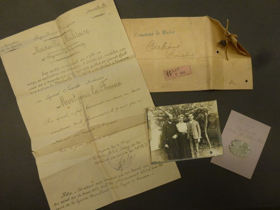 Dans les notes relatives à son père Henri, Lucien écrit : "En 1919, nos parents entrèrent en relation avec le curé de Le Hérie-La-Viéville (au sud de Guise) où les renseignements recueillis situaient la mort de leur fils. Je les accompagnai pendant l'été ; la visite des cimetières de la Désolation et de Le Sourd ne donna pas de résultat probant, seulement les dires des habitants rendirent très probables l'inhumation à la Désolation. L'année suivante l'administration qui avait pris en main les cimetières militaires procéda à une exhumation générale. J'étais venu à Orléans pour accompagner mon père, mais celui-ci visiblement impressionné, ne se décidant pas à partir ; sur les conseil de ma mère je partis seul ; le lendemain il me rejoignait. Les Allemands avaient envoyé par la Suisse les plaques d'identité des corps qu'ils avaient relevés dans la campagne et groupés dans les cimetières. Ainsi l'acte de décès avait pu être établi mais la reconnaissance des corps devenait très problématique. Pour mon frère on pouvait se baser sur une particularité de dentition ; nous assistâmes à l'examen de tous (tous ?) les squelettes couverts d'une capote de caporal du 84 RI, sans succès".