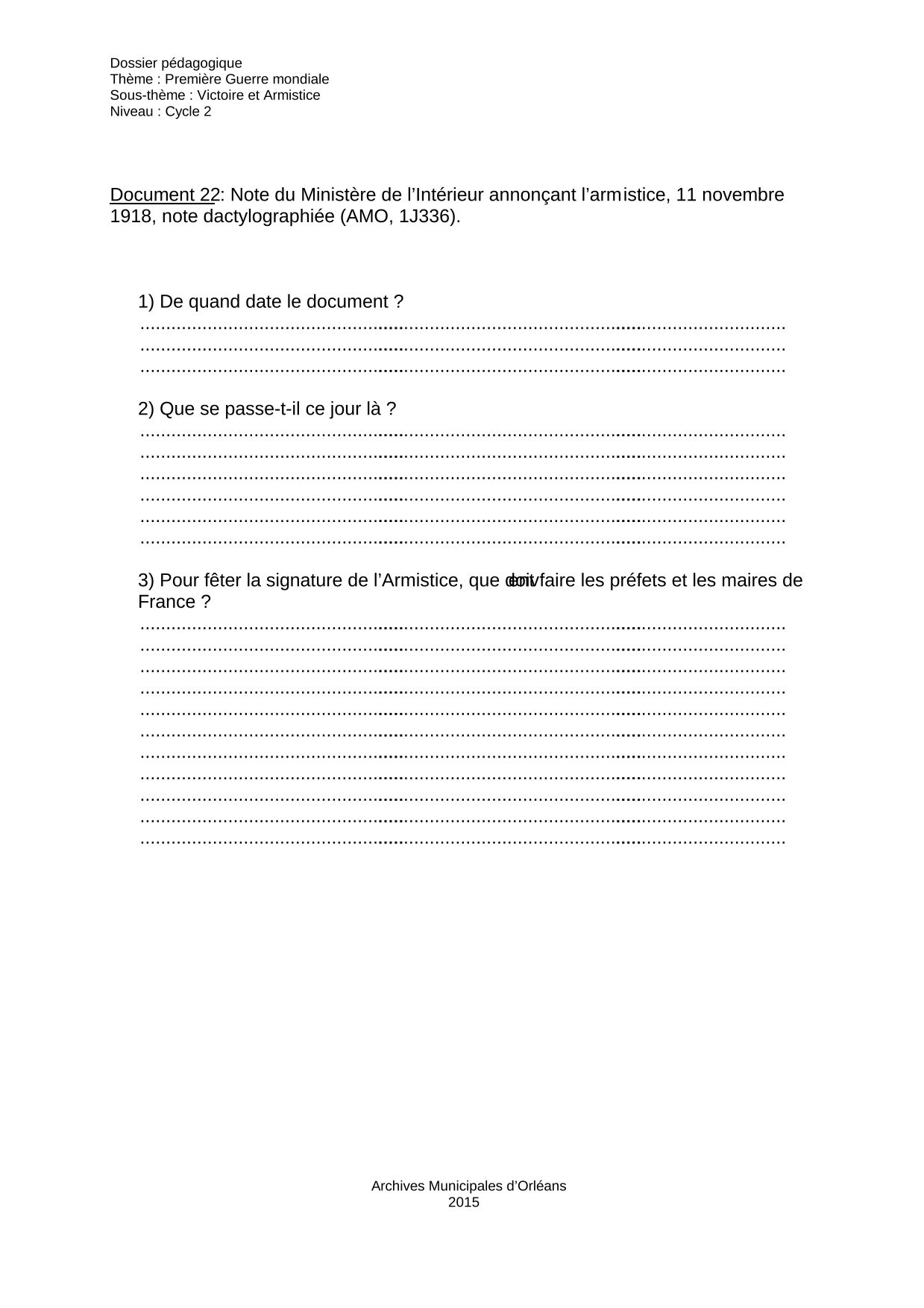 Note du Ministère de l'Intérieur annonçant l'armistice