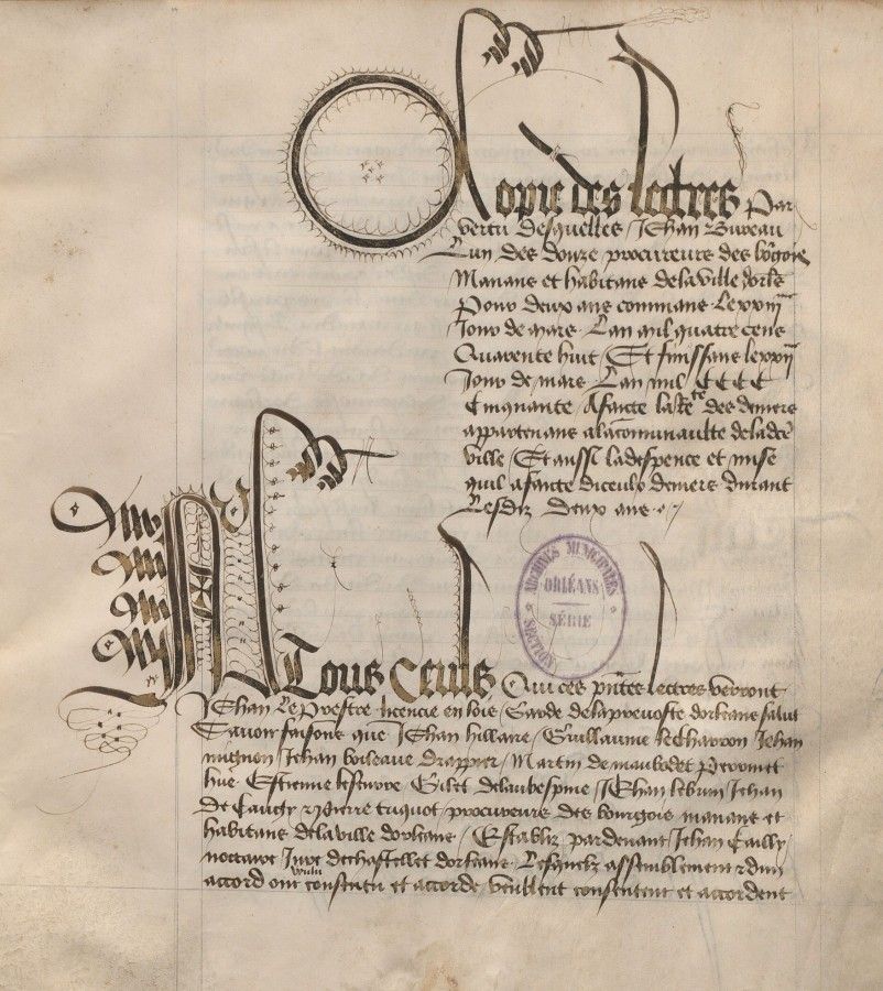 Les registres paroissiaux orléanais débutent au 16e siècle, l‘acte le plus ancien est la transcription d’un baptême dans le registre de la paroisse Saint-Paul en 1526.