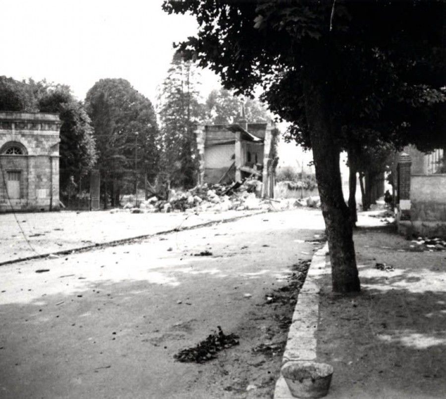 Pendant les bombardements de juin 1940, le pavillon situé du côté de la rue de la Vieille-Levée est entièrement sinistré. Classé au programme prioritaire de reconstruction en 1951, on envisage de le reconstruire à l’identique. Le projet est toutefois abandonné en raison du coût que nécessite sa réalisation en pierres de taille. De 1958 à 1960, on restaure le portail d’entrée, des grilles neuves sont mises en place et quelques maçonneries sont refaites.