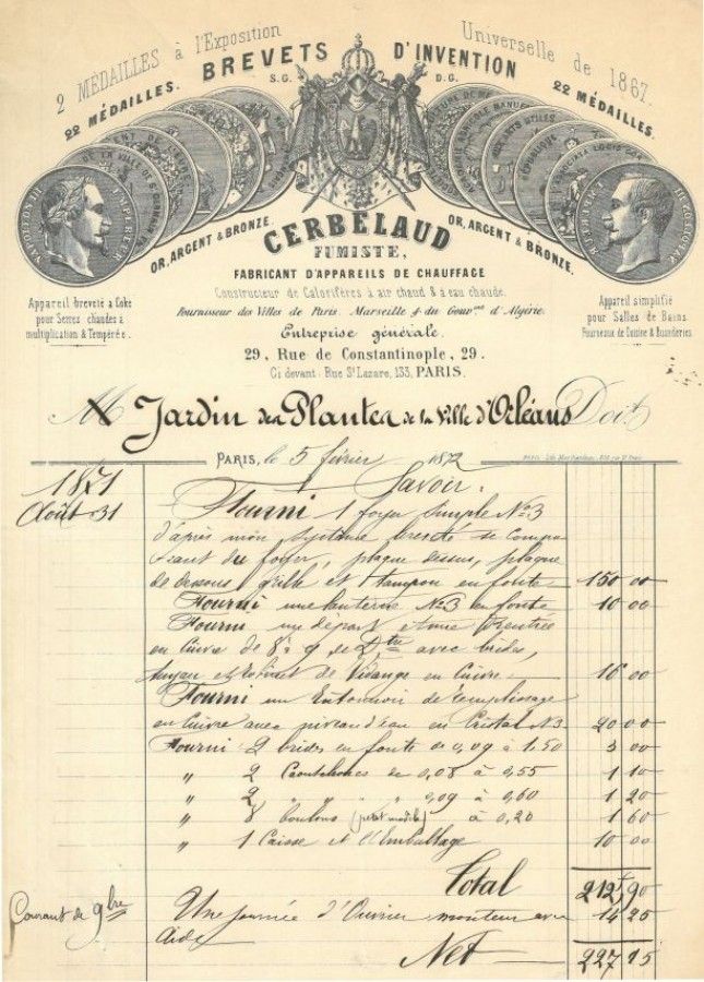 Le premier calorifère destiné à chauffer les serres est installé dans l'orangerie et s’avère peu performant.