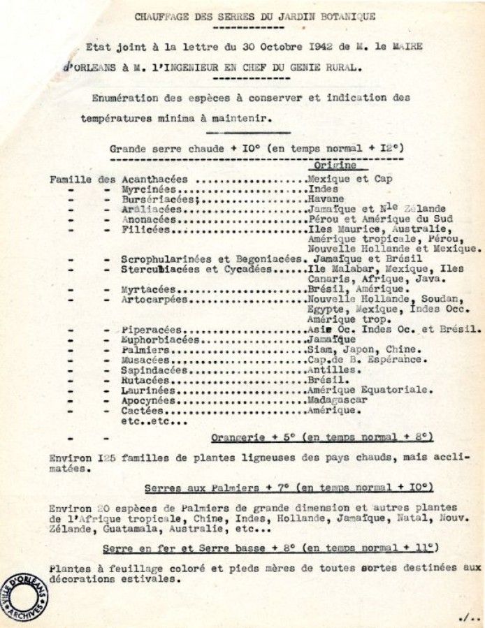 La municipalité adresse une demande d'attribution de 20 tonnes de charbon pour le chauffage des serres du Jardin botanique.