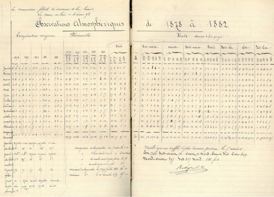 Les relevés des observations atmosphériques sont soigneusement consignés dans les registres des délibérations de la commission administrative du Jardin des plantes.