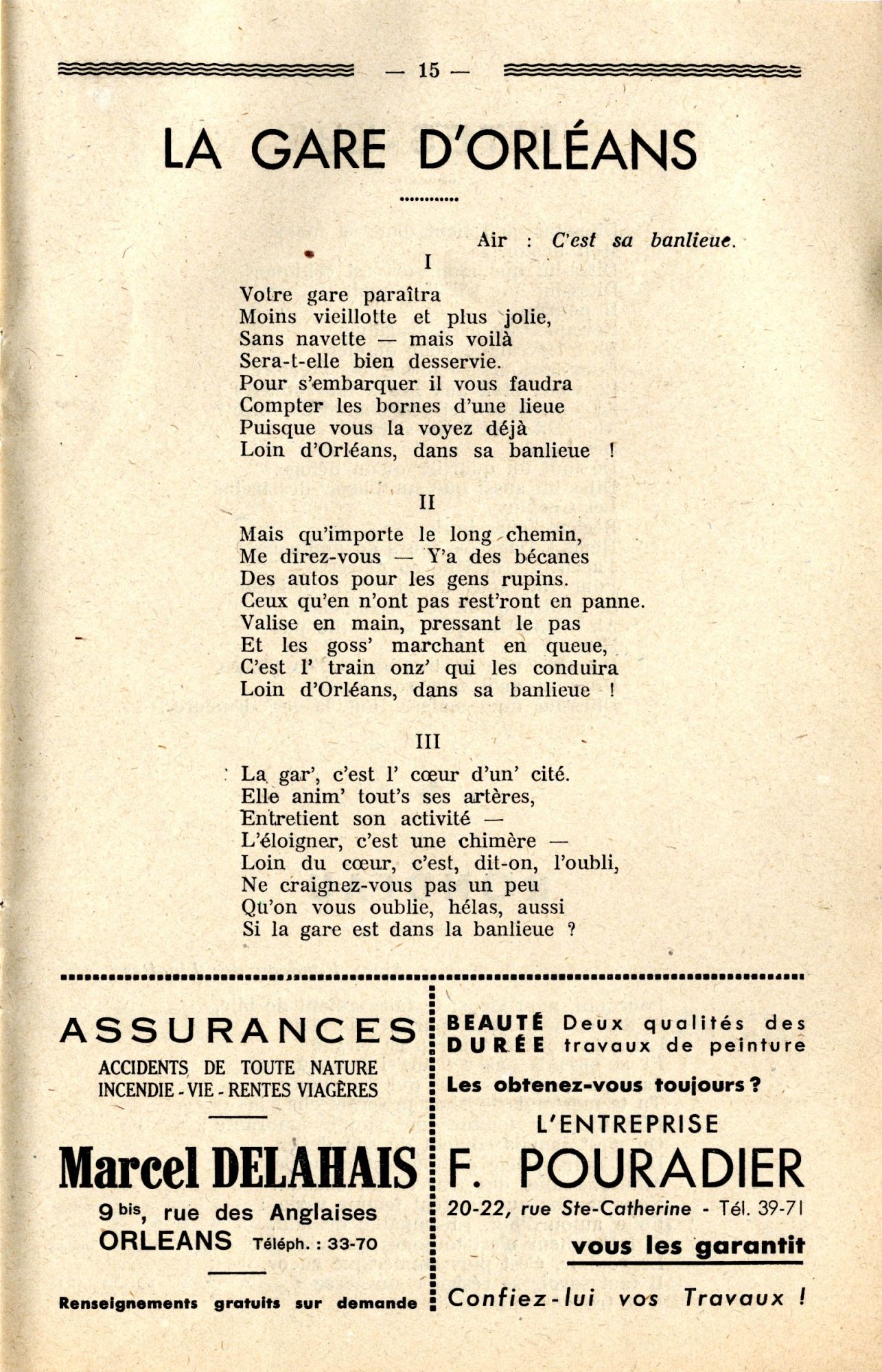 En 1935, le plan d’extension, d’embellissement et d’aménagement de la ville, signé de l’urbaniste Alfred Agache, préconise la création d’une gare unique grâce à la fusion de la gare existante avec celle des Aubrais. L’urbanisation rend néanmoins ce projet difficile à réaliser puisqu’il nécessiterait de nombreuses expropriations et démolitions. A l’époque, malgré le remplacement de la vapeur par la traction électrique, il faut environ dix à quinze minutes pour se rendre aux Aubrais. La navette, qui relie les deux gares, est réputée incommode et inconfortable.