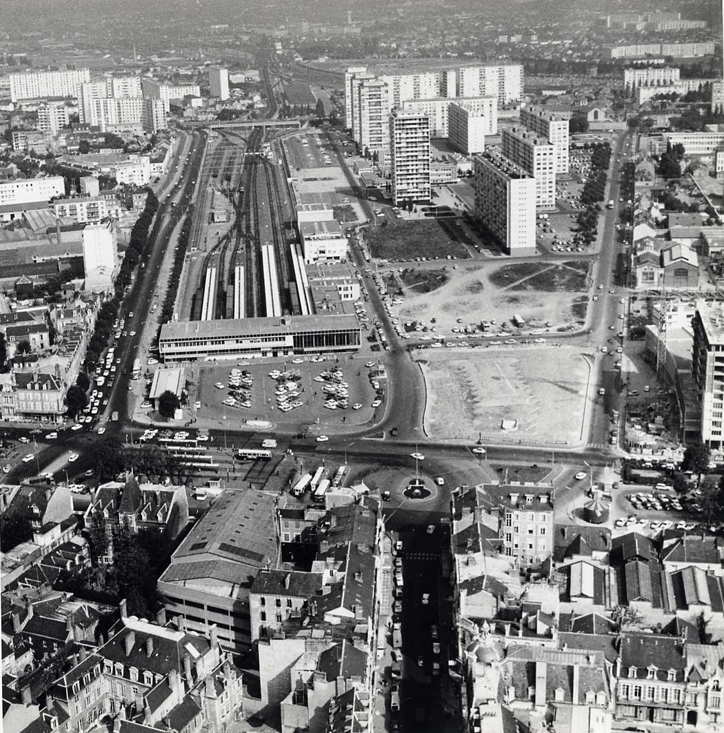 Lors de leur reconstruction, les installations ferroviaires sont décalées vers le nord-ouest. Ainsi, de vastes espaces sont dégagés. Le quartier fait l’objet d’une série d’aménagements supervisés par l’urbaniste Léon Bazin. Plusieurs immeubles sont construits avenue de Münster et rue Emile-Zola. Parallèlement, alors que le stationnement des véhicules est devenu un enjeu, des parkings sont aménagés pour les voyageurs à l’arrière et face à la gare. Ce dernier est rapidement trop exigu. Les usagers utilisent en plus le terre-plein laissé à l’abandon à l’est.