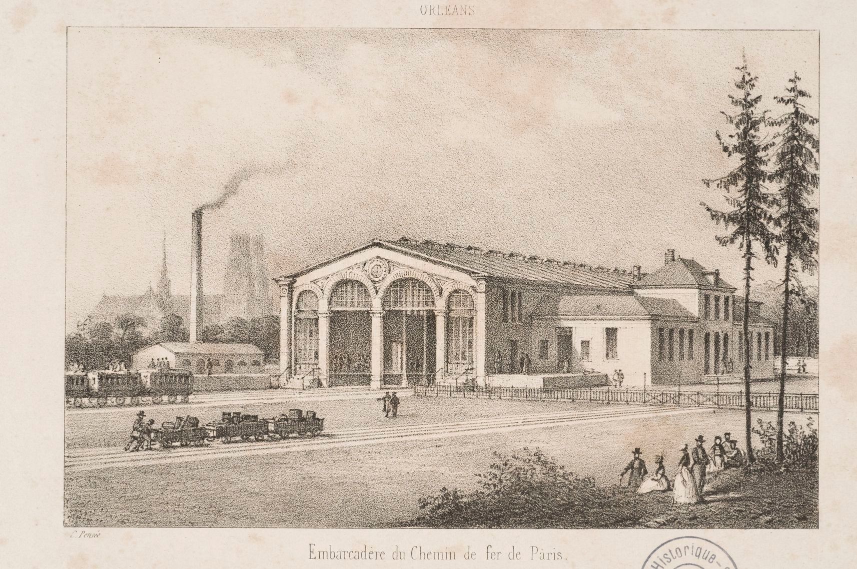 La ligne Paris-Orléans est inaugurée le 2 mai 1843. Plusieurs convois, formés chacun de 15 wagons, tractés par deux locomotives et transportant 1200 personnes en tout, partent successivement de l’embarcadère du Jardin des Plantes à Paris. A une vitesse de 39 kilomètres par heure, les voyageurs atteignent Orléans en seulement quatre heures contre dix heures dix ans plus tôt en diligence !