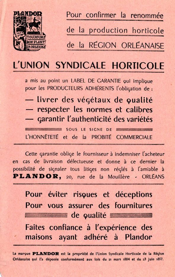 Différentes entreprises font la renommée de l’horticulture orléanaise. Chaque année, les établissements impriment des catalogues de vente qui présentent leur production composée de différentes espèces de fleurs mais aussi d’arbres, de fruits et de légumes. Très tôt, les catalogues sont illustrés. Certains sont traduits en anglais ce qui témoigne de l’exportation outre-Manche de la production.