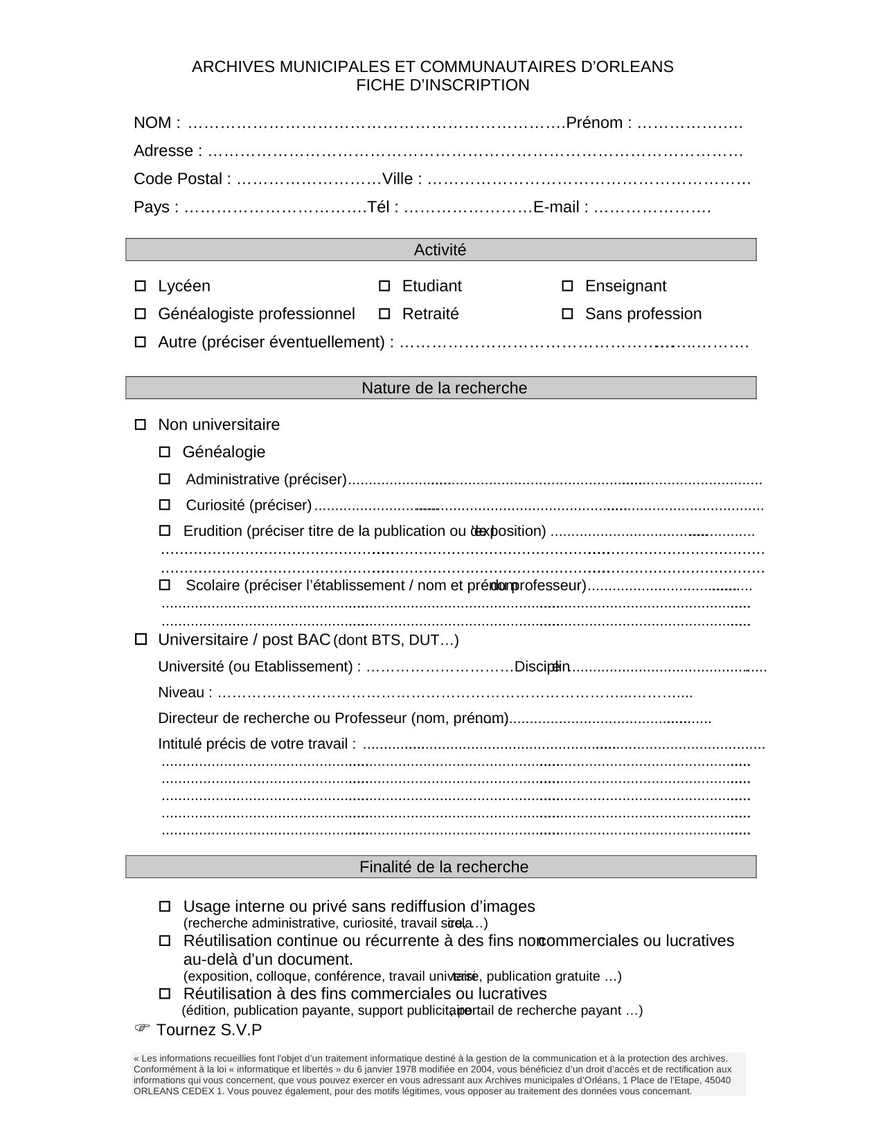 - remplir une fiche d'inscription