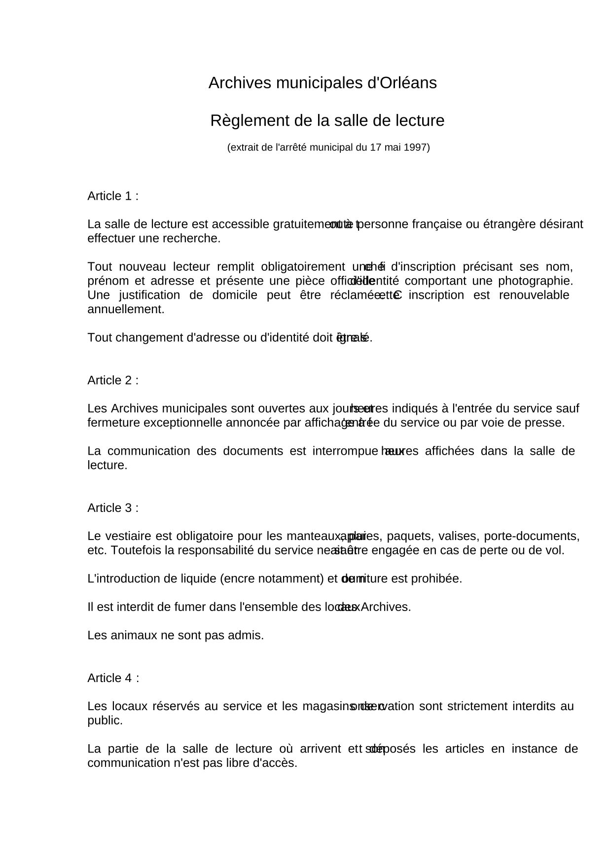 - accepter le règlement de la salle de lecture