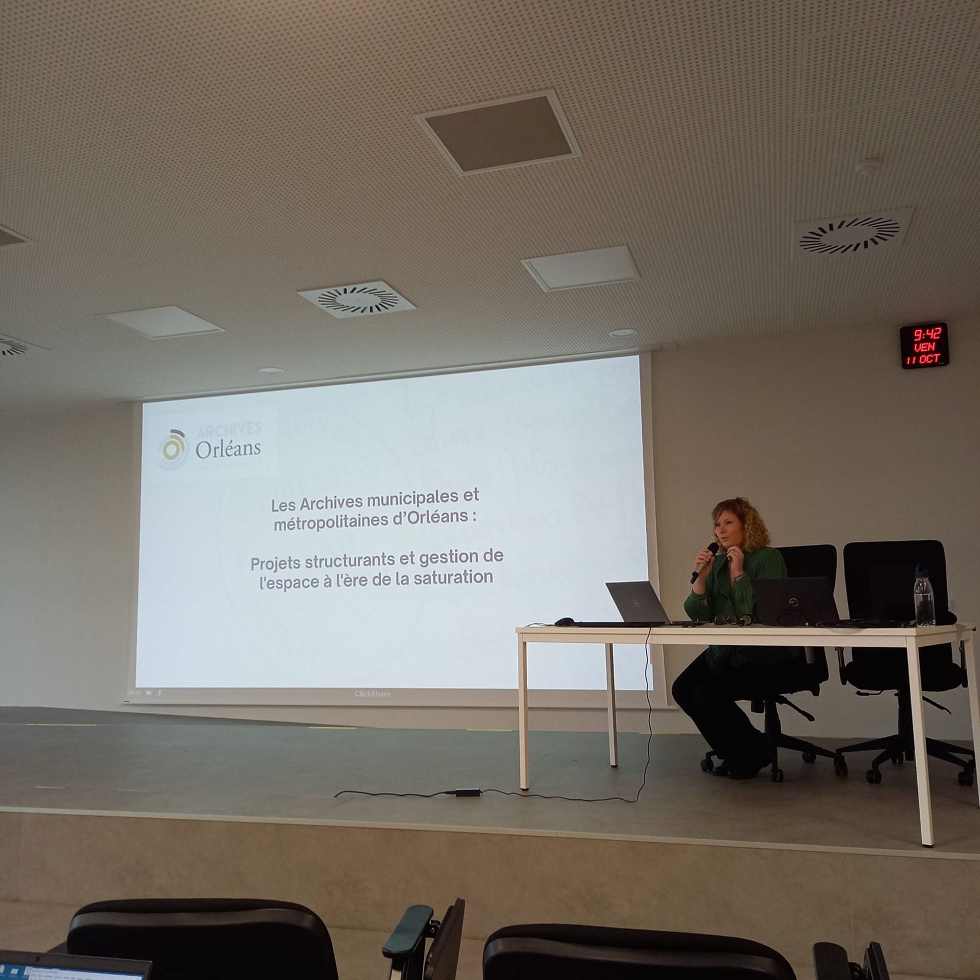 Au programme des différentes interventions, notre service a pu revenir sur les questions de problématiques de saturation bâtimentaire et de collecte des archives dans un tel contexte ou encore évoquer le projet d'archivage électronique mené en partenariat avec d'autres collectivités au niveau régional. Les étudiants ont également bénéficié d'un exposé sur la création du service des archives de l'intercommunalité en 1999 et fusionné depuis 2015 avec celui de la Ville d'Orléans.
