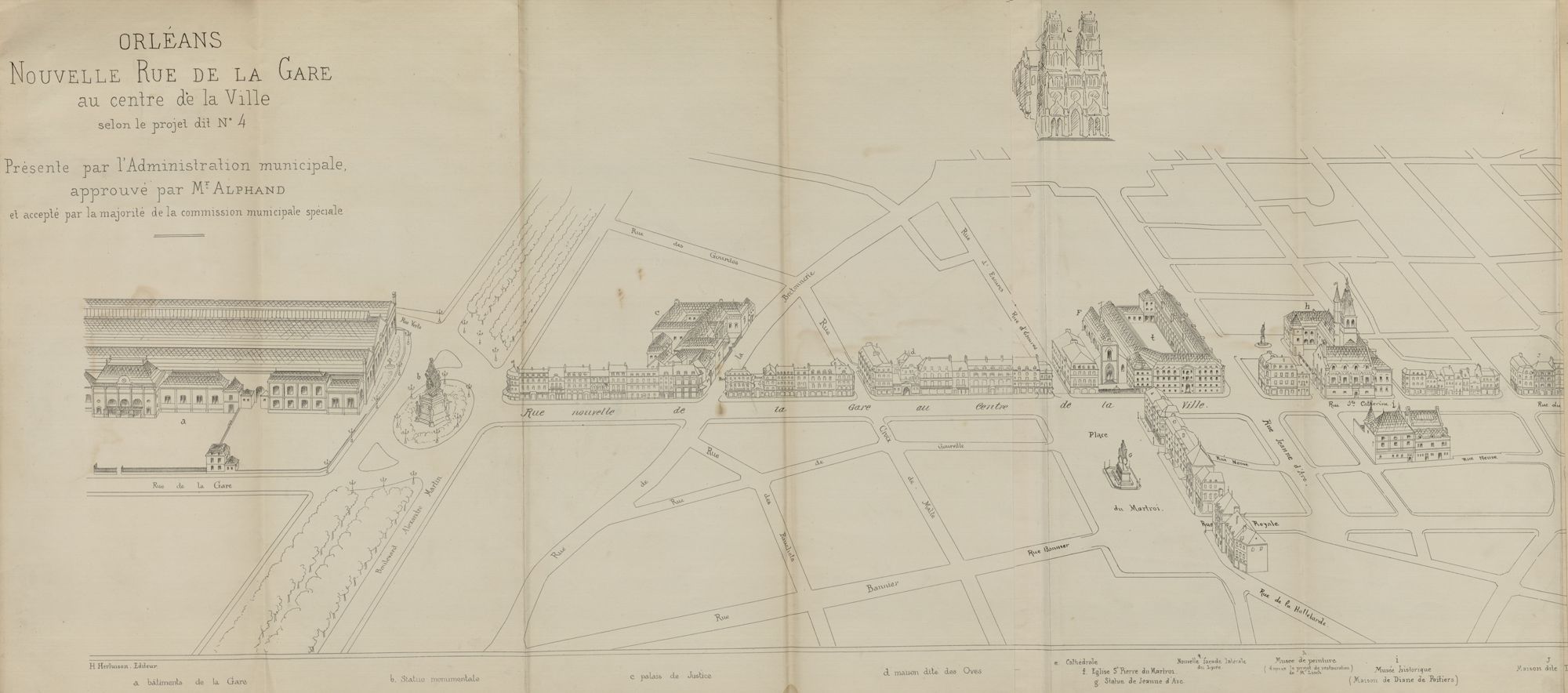 Celui-ci prévoit non seulement la création d’une gare unique et de nouvelles voies ferrées au long du Grand cimetière mais aussi, grâce à l’espace dégagé, l’aménagement d’un quartier monumental. Centré sur une avenue prolongeant la rue de la République et aboutissant sur la façade de la nouvelle gare, ce quartier aurait constitué un vaste espace résidentiel à l’architecture d’après-guerre comprenant un grand stade entre les rues Émile-Zola et Eugène-Vignat. Malgré l’officialisation du projet, les débats perdurent. Les années passent, la gare des Aubrais est reconstruite et finalement, la gare unique ne voit pas jour.