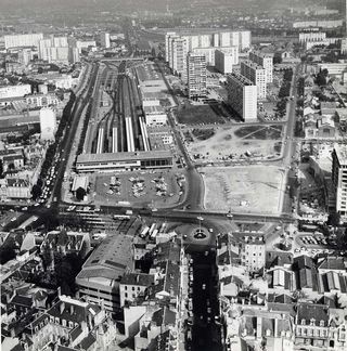 Lors de leur reconstruction, les installations ferroviaires sont décalées vers le nord-ouest. Ainsi, de vastes espaces sont dégagés. Le quartier fait l’objet d’une série d’aménagements supervisés par l’urbaniste Léon Bazin. Plusieurs immeubles sont construits avenue de Münster et rue Émile-Zola. Parallèlement, alors que le stationnement des véhicules est devenu un enjeu, des parkings sont aménagés pour les voyageurs à l’arrière et face à la gare. Ce dernier est rapidement trop exigu. Les usagers utilisent en plus le terre-plein laissé à l’abandon à l’est.
