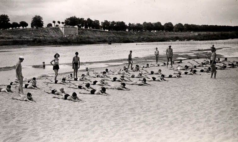 Des plages et des lieux de baignade naturels existent dans plusieurs points de la ville. A l’ouest, les ouvriers du quartier Madeleine se rendent quai Barentin. Dans une pétition de 1914, ils rappellent la nécessité de ce « bain quotidien si nécessaire après les rudes labeurs des journées si pénibles pendant les périodes de chaleur ». De l’autre côté, dans le secteur de l’Ile Arrault, la Loire offre de belles étendues de sable. Chaque été, on y emmène les enfants des écoles de plein air. L’œuvre des enfants aux plages de Loire est créée. Placés sous la surveillance d’une infirmière, les enfants doivent bénéficier des bienfaits de l’air et du soleil durant les vacances scolaires.