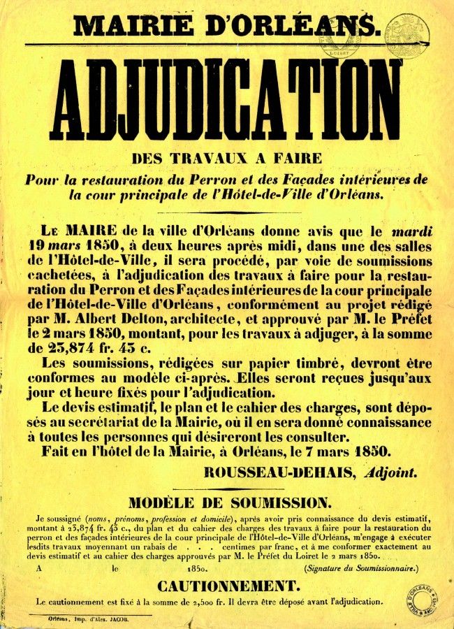 Entre 1850 et 1855, l’hôtel Groslot subit d’importants travaux d’extension et de restauration sous la direction de l’architecte Albert Delton : adjonction de deux ailes, suppression du mur de clôture remplacé par une grille, construction d’un double escalier sur la façade principale, ornementation des façades, décoration intérieure.