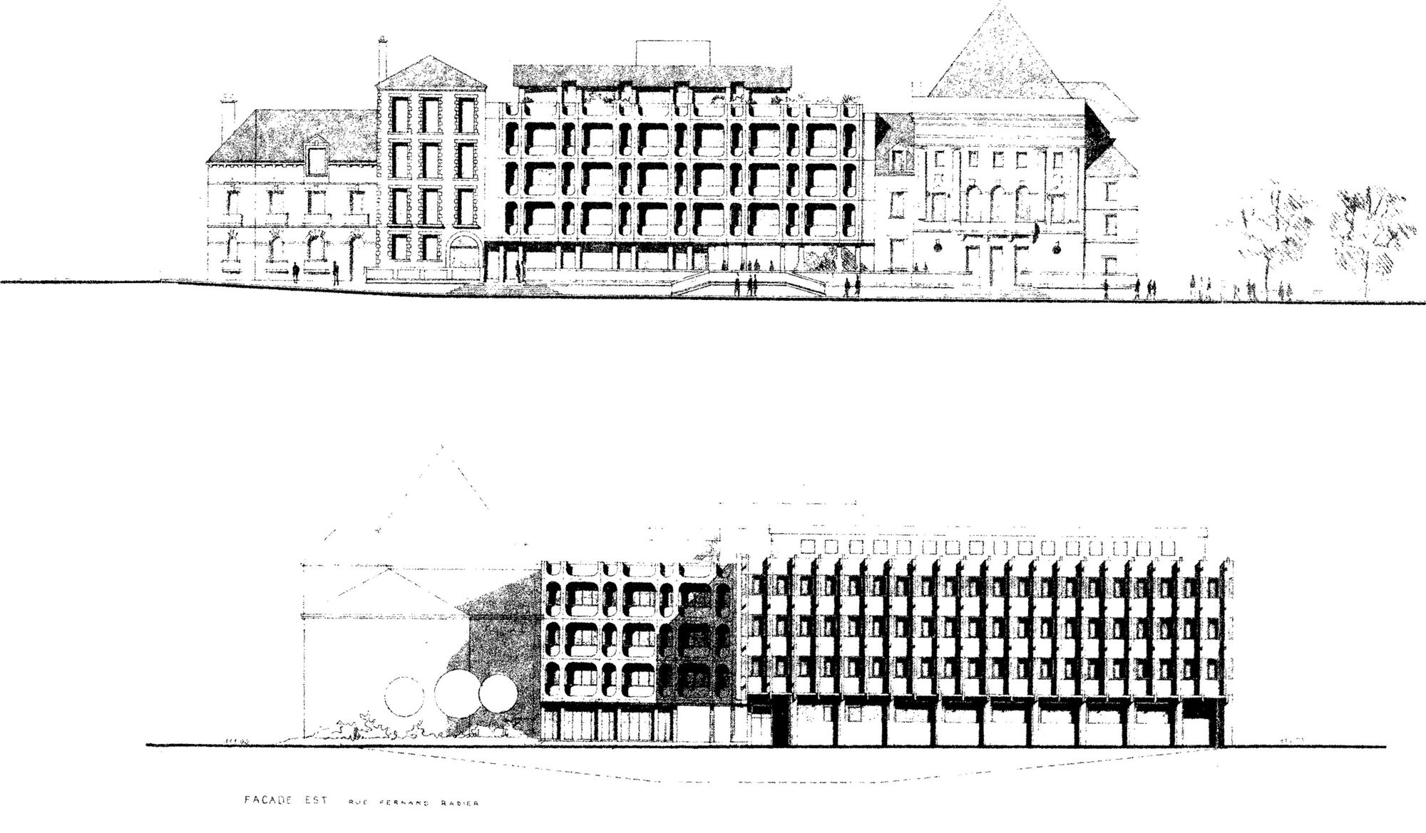 Son architecture devra s’intégrer dans le projet d’aménagement des abords de la cathédrale qui verra également la construction du conseil régional et du musée des beaux-arts. De longues années seront nécessaires à la concrétisation du nouvel hôtel de ville, depuis la première esquisse présentée en 1974 par le cabinet d’architectes Arsène-Henry jusqu’à l’inauguration le 15 décembre 1981.