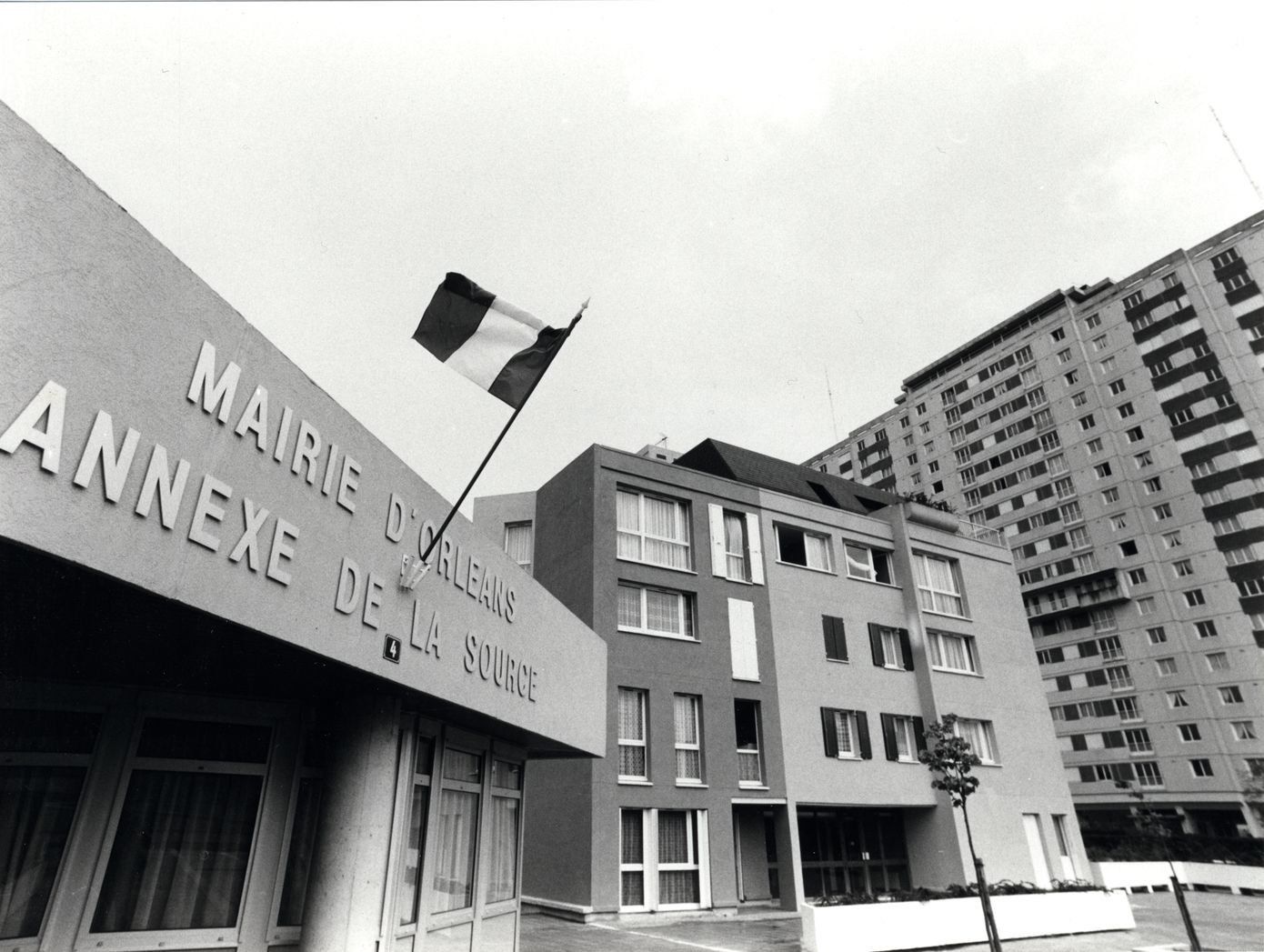 La création de la première mairie annexe est liée à l’urbanisation de La Source. Après avoir fonctionné dans des classes démontables, les services municipaux sont installés en 1966 dans un bâtiment préfabriqué implanté à proximité de la résidence Beauchamps. En 1969, ils déménagent dans des appartements de l’Office municipal d’H.L.M., allée Camille-Flammarion. Enfin, le 10 juin 1981, est inaugurée la mairie actuelle, aménagée dans des lots achetés à la Société Anonyme d’H.L.M. du Loiret dans la résidence Montesquieu, place Choiseul. Fin 1982, le terme de « mairie de quartier » remplace celui de « mairie annexe ».