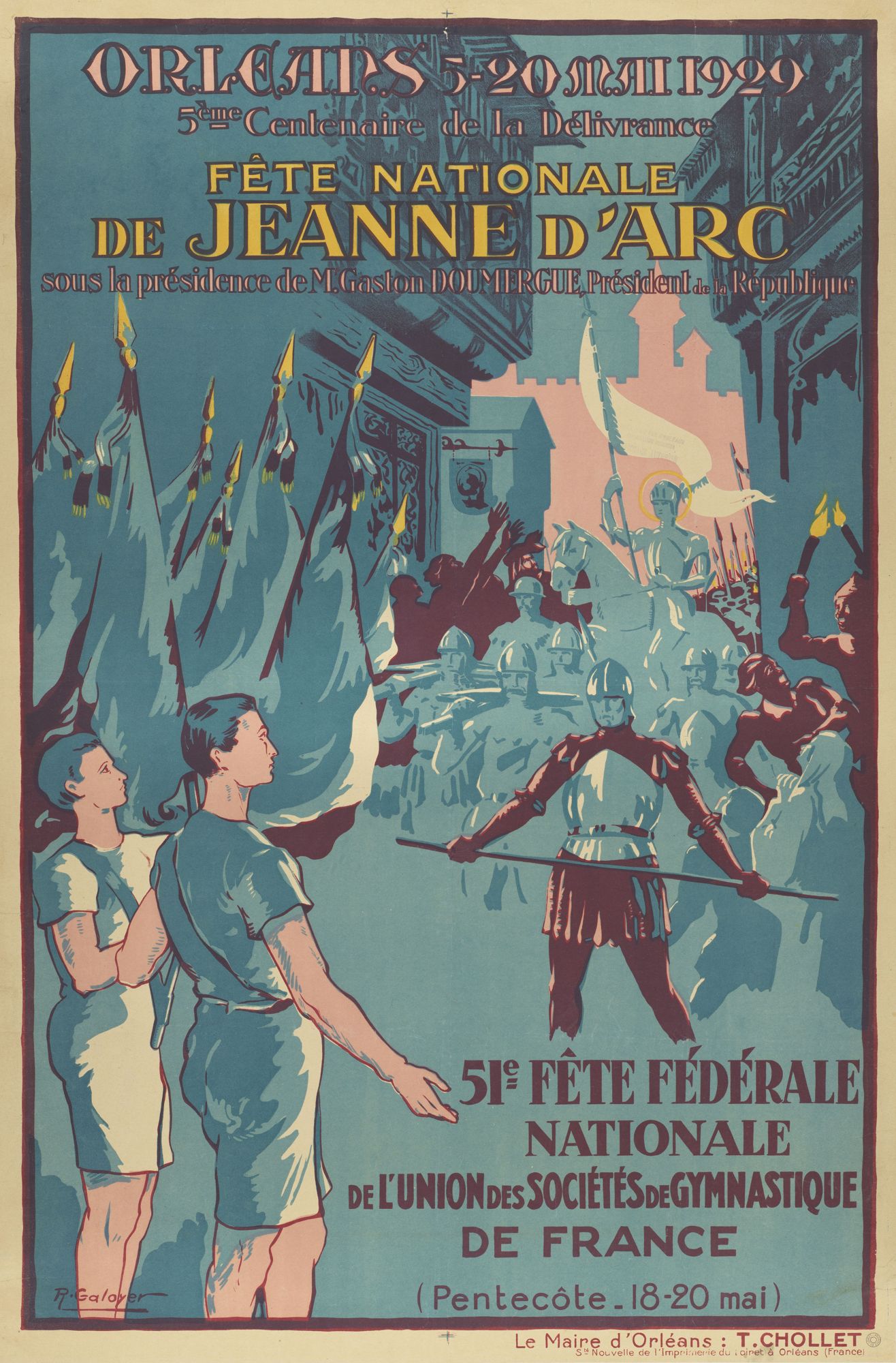 Quelque peu oubliée aujourd'hui, la Fête fédérale de gymnastique était un évènement de grande ampleur chaque année de la fin du 19e siècle à 1939. Manifation festive et sportive, elle était organisée par l'Union des Sociétés de Gymnastique de France, l'acteur principal de la gymnastique en France au 19e siècle et au début du 20e siècle. La Fête comprennait le championnat de France de gymnastique, des rencontres internationales entre des sociétés de gymnastiques françaises et européennes, ainsi que de nombreuses célébrations parfois grandioses. Elle avait lieu chaque année dans une ville différente, dont le choix était souvent connecté aux célébrations locales : c'est le cas de la Fête fédérale qui a eu lieu à Orléans en 1929, à l'occasion du cinquième centenaire de la délivrance d'Orléans.