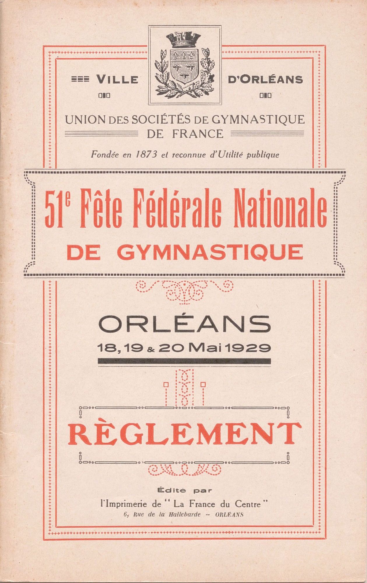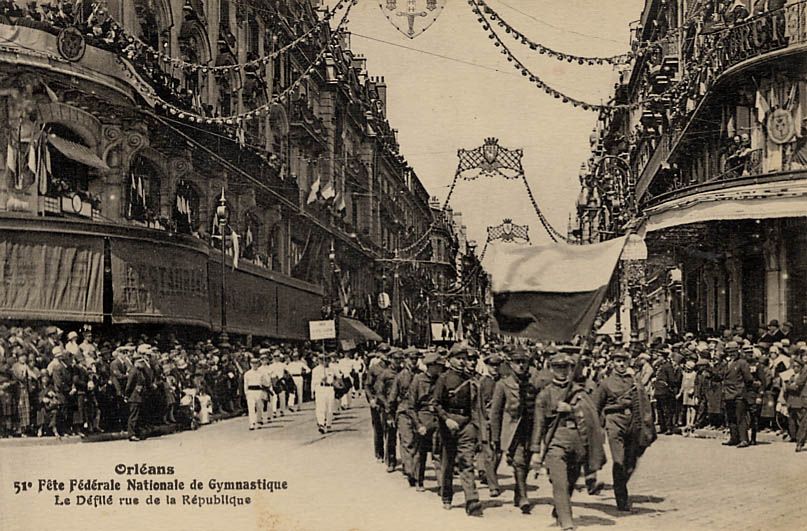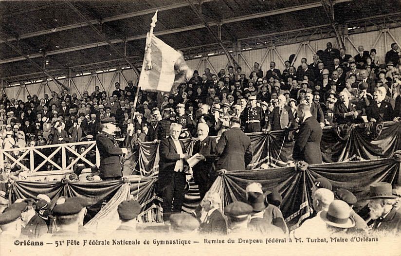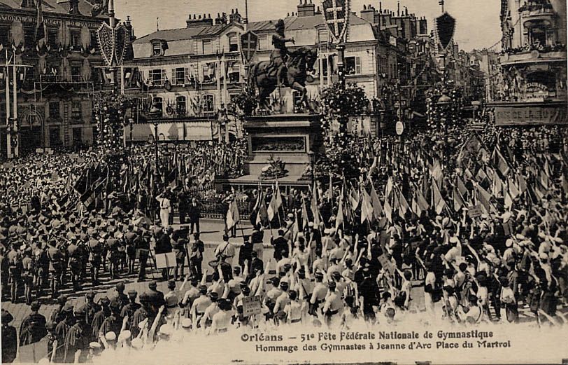 En début d’après-midi, les sociétés de gymnastique se rassemblent boulevard de Verdun et marchent jusqu’à la place du Martroi, où ils rendent hommage à Jeanne d’Arc devant la statue. Le défilé continue ensuite dans la ville et les gymnastes rejoignent l’Île Arrault pour les célébrations de la Fête fédérale. Les sociétés effectuent des démonstrations artistiques et des mouvements d’ensemble en musique. Le drapeau fédéral est officiellement remis par Charles Cazalet à Eugène Turbat. La ville conservera ce drapeau jusqu’à la Fête de l’année suivante, qui aura lieu à Alger.