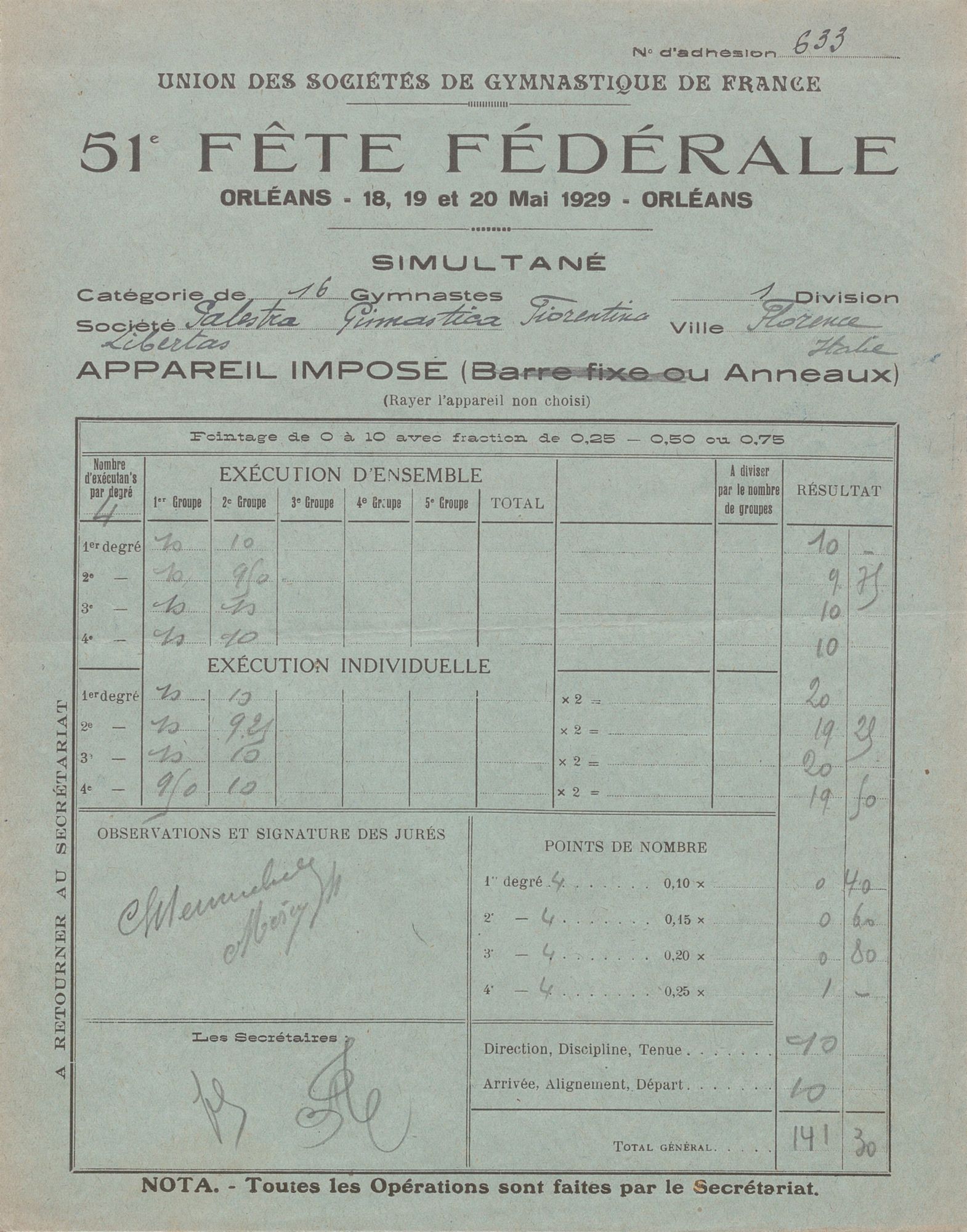Après la Fête, les sociétés peuvent faire des réclamations si elles remarquent une erreur dans leur notation. C'est par exemple le cas de l'Avant-Garde de Rabat, surnotée, et de la Palestra Gimnastica Fiorentina, sous-notée.