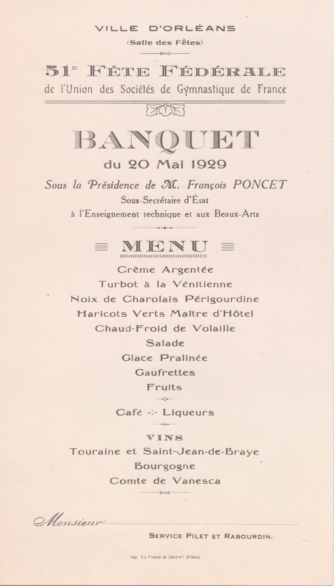 Un grand banquet est donné le soir et un feu d’artifice sur les bords de Loire conclut les manifestations.