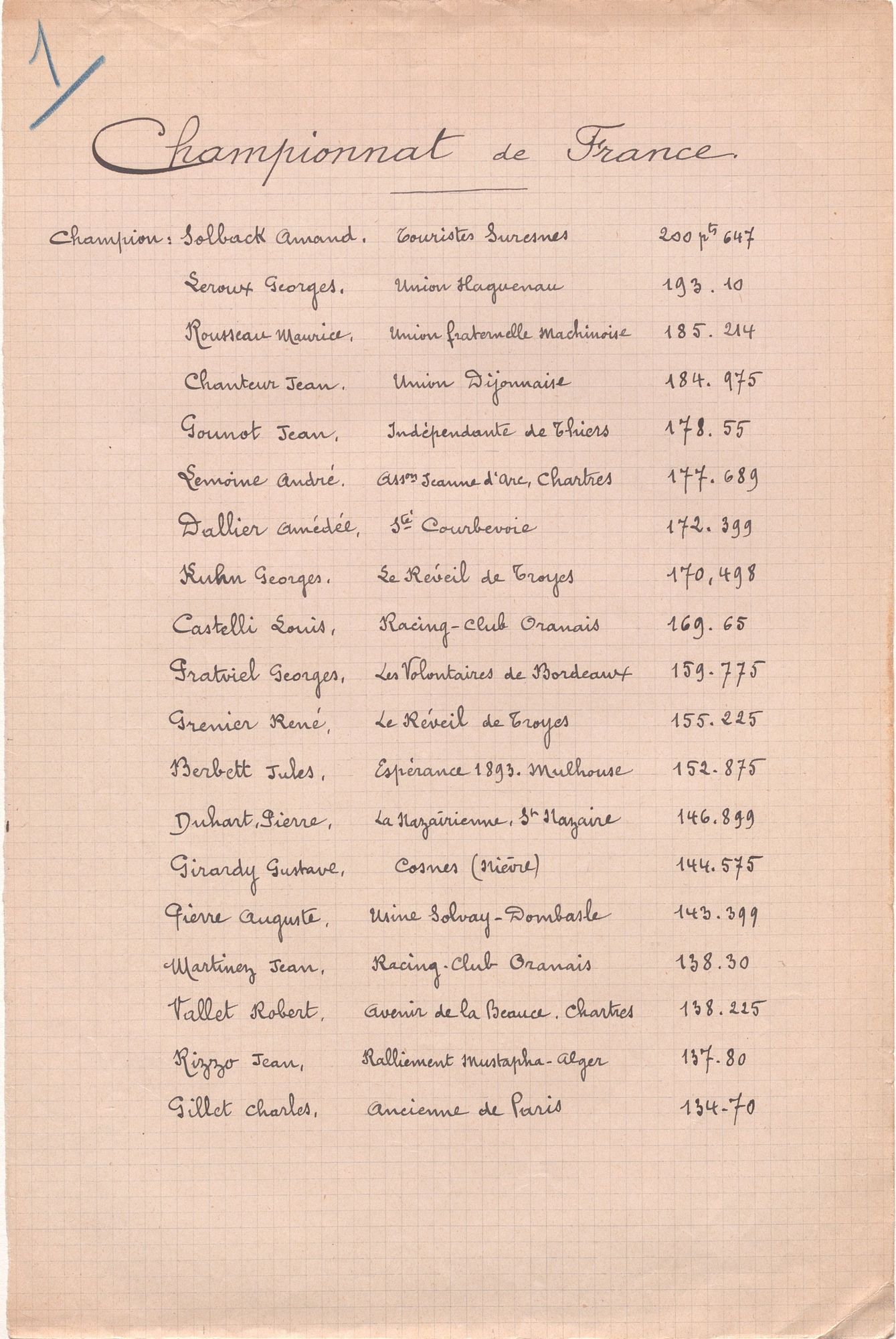 Les prix sont remis le mardi matin au Théâtre. Armand Solbach, de la société des Touristes Suresnes, est couronné champion de France individuel. Les Touristes Suresnes se placent également premiers aux compétitions en équipe. Le premier corps d’armée de Lille remporte le championnat militaire.