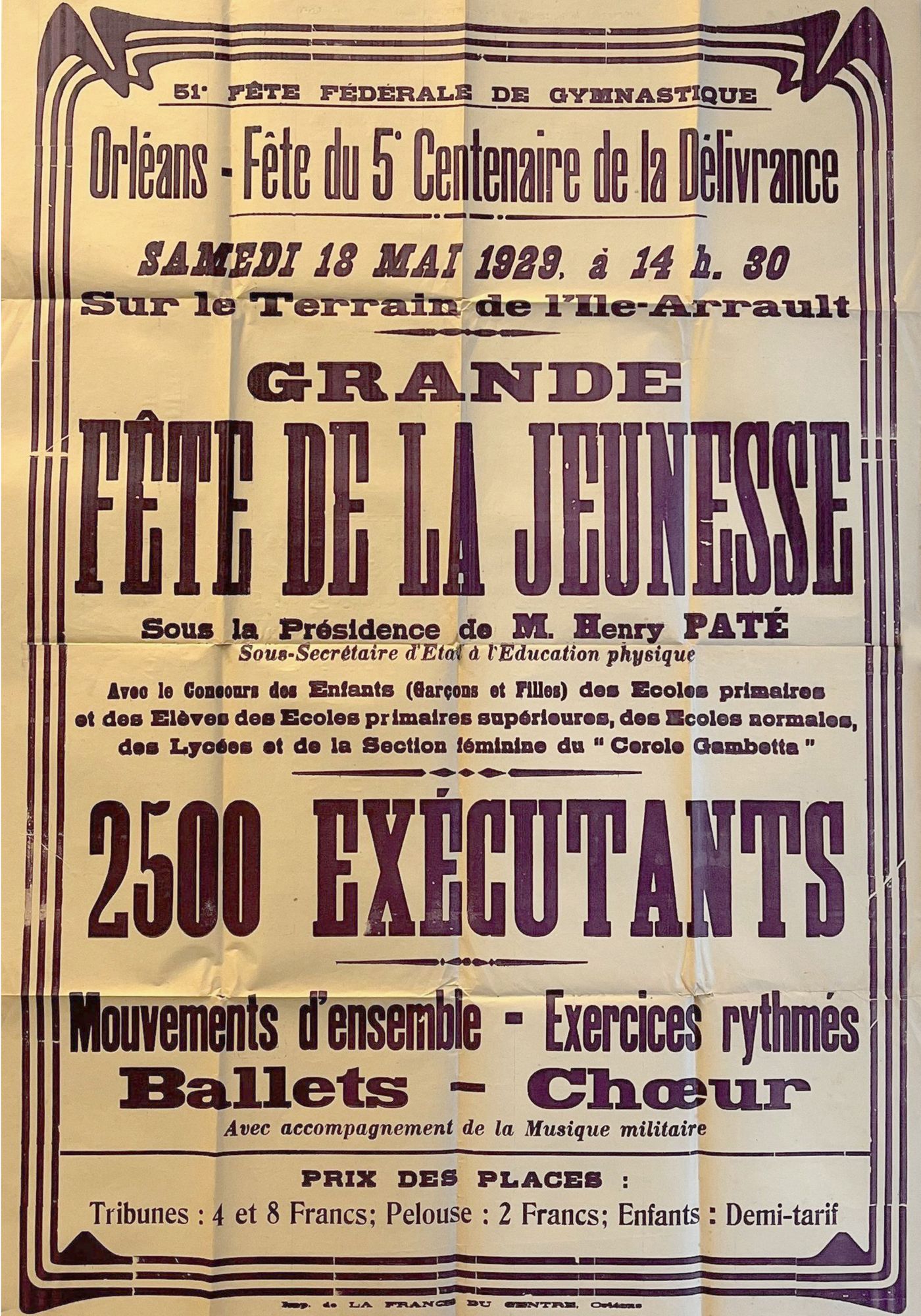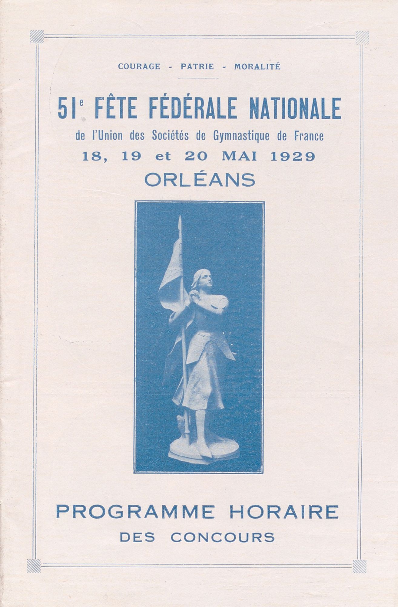 La Fête fédérale de gymnastique est placée sous la présidence de Paul Painlevé, le ministre de la Guerre. 7 000 participants de 358 sociétés sportives et des compétiteurs individuels provenant de toute la France et même de l’étranger (Italie, Belgique, Roumanie…) se retrouvent à Orléans les 18, 19, et 20 mai, week-end de Pentecôte, pour les compétitions sportives et les nombreuses célébrations qui les accompagnent. Le président de la République, Gaston Doumergue, n’y assiste pas, bien que la Fête soit placée sous son haut patronage.