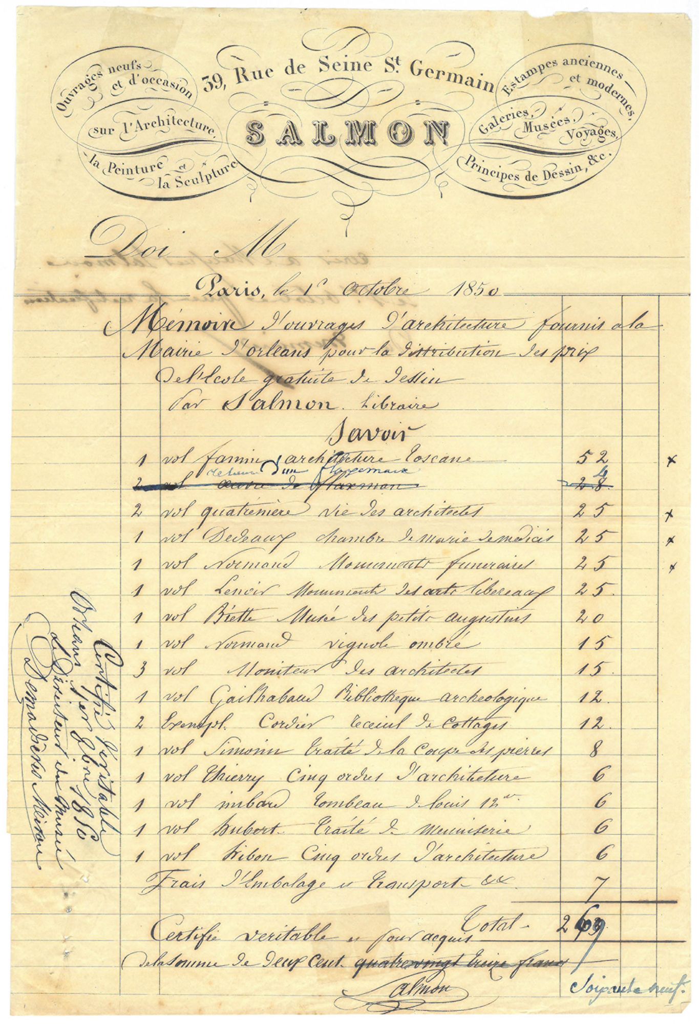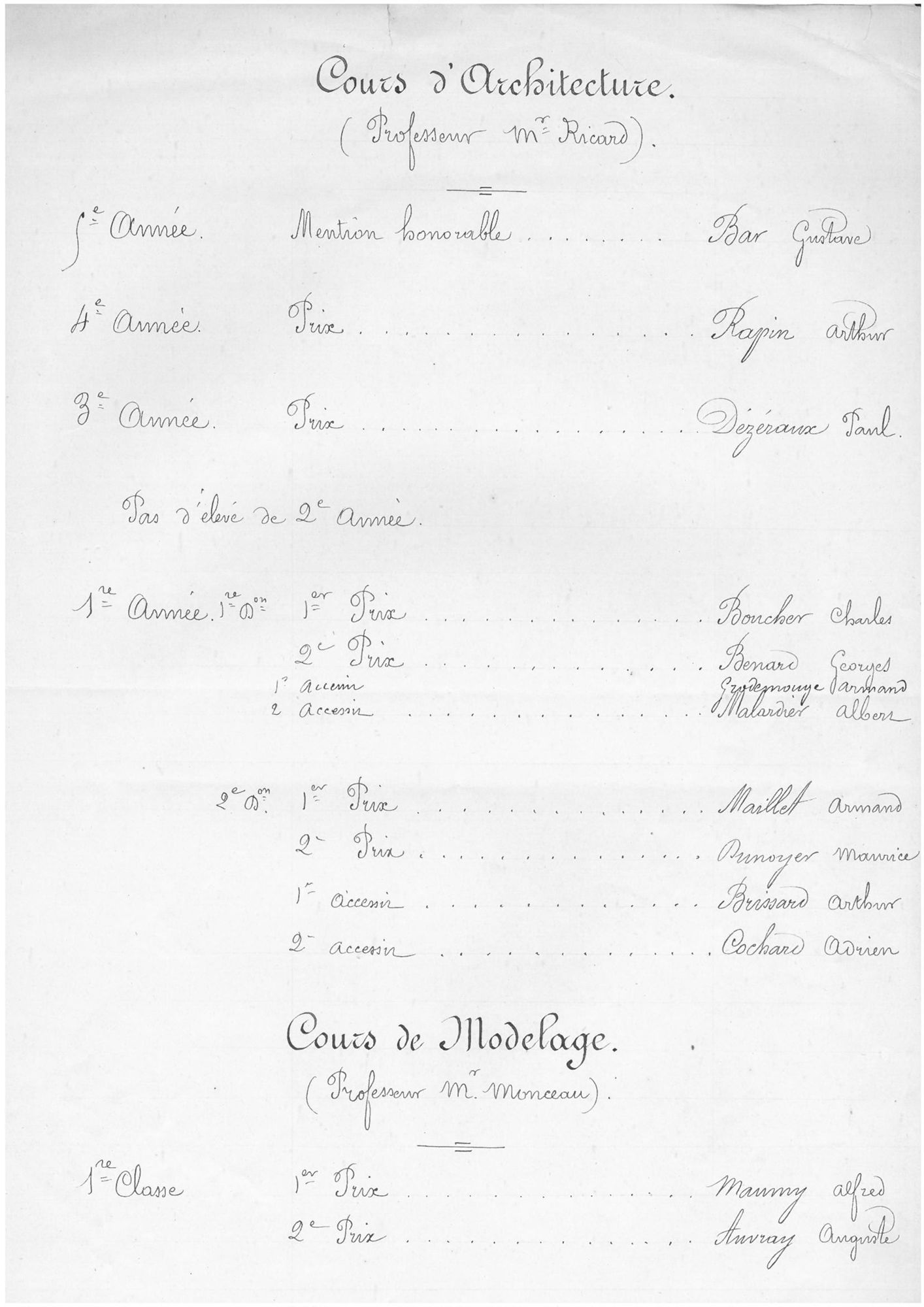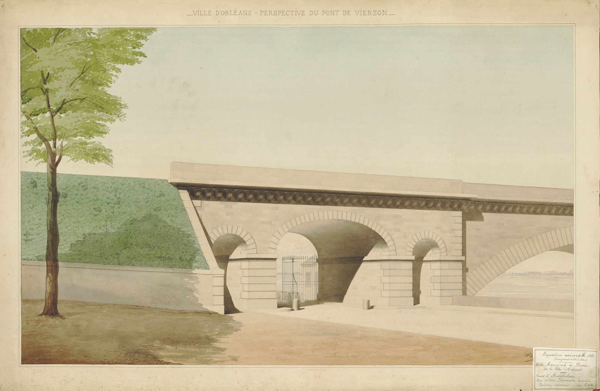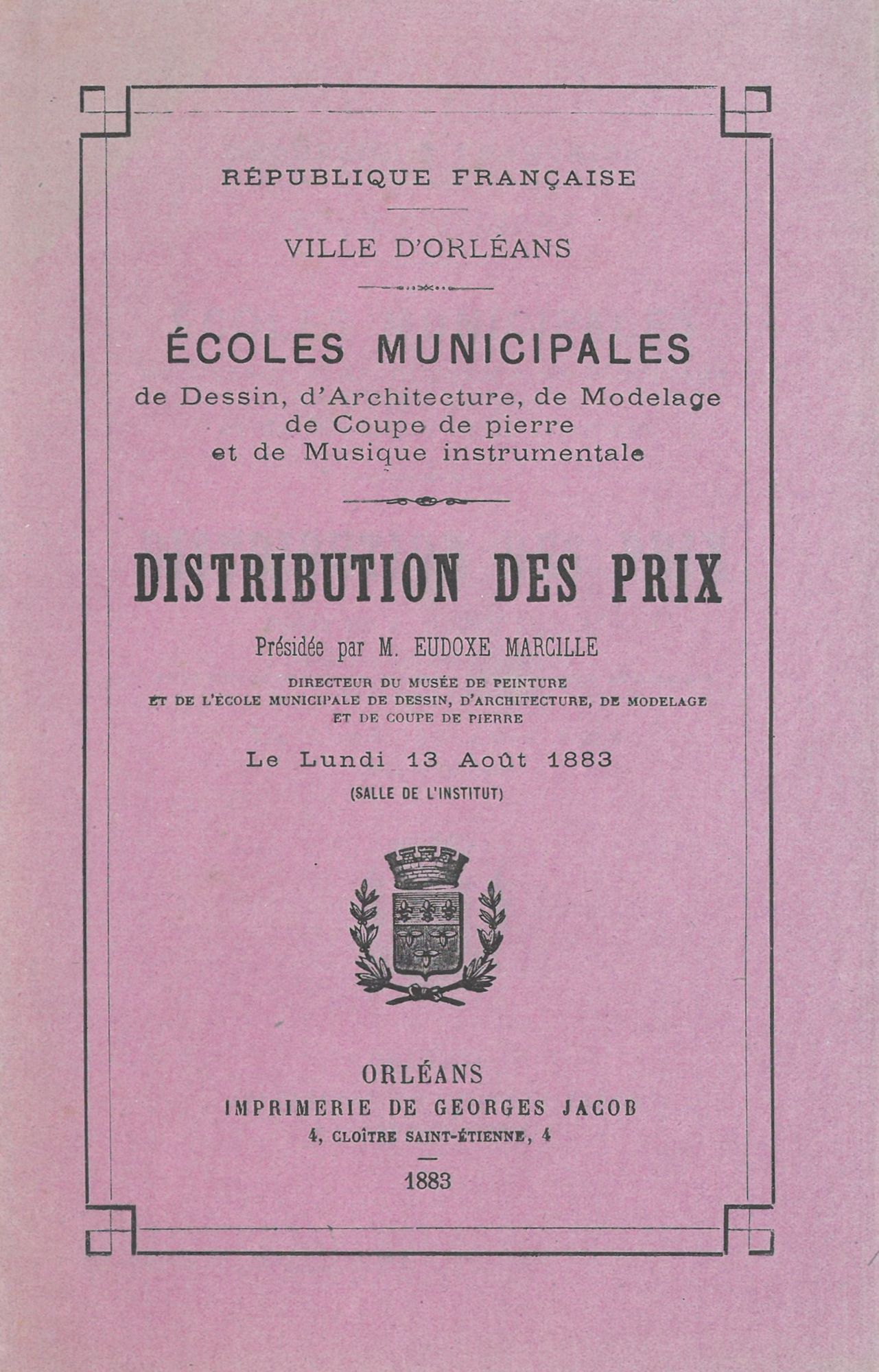 Parmi les élèves très distingués, le jeune Ferdinand Farcinade en classe d’architecture, menuisier, représente l’Ecole de dessin d’Orléans à l’Exposition universelle de 1889 avec une série de ses remarquables dessins.