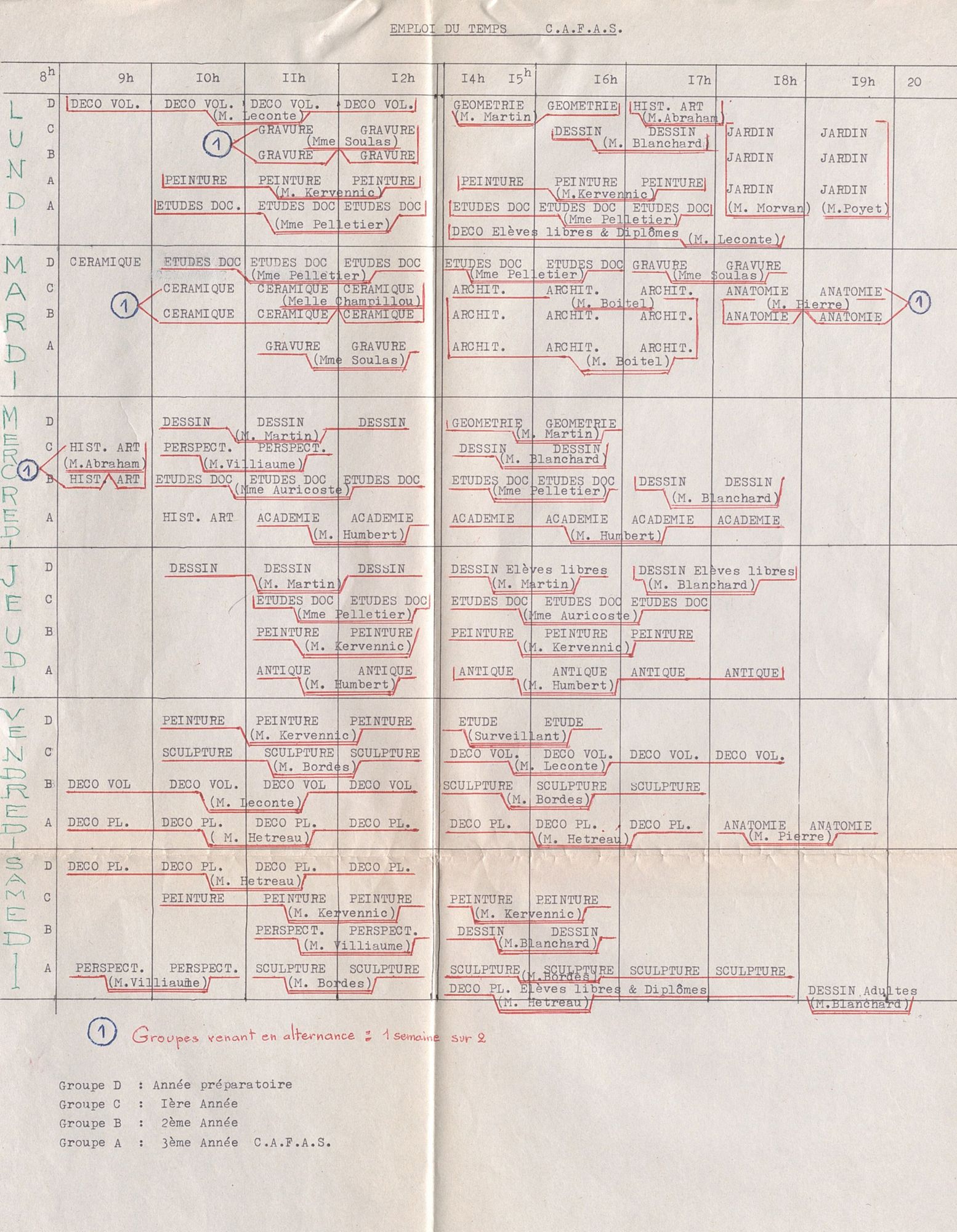 D’un unique candidat à la création du C.A.F.A.S. en 1954, 64 élèves préparent le diplôme en 1964. La préparation se déroule en 4 ans et comprend l’ensemble des matières enseignées à l’école : Histoire de l’art, sculpture, culture générale, antique, architecture, céramique, lettres, dessin, peinture, décoration, croquis, modelage, études documentaires, anatomie, gravure et perspective.