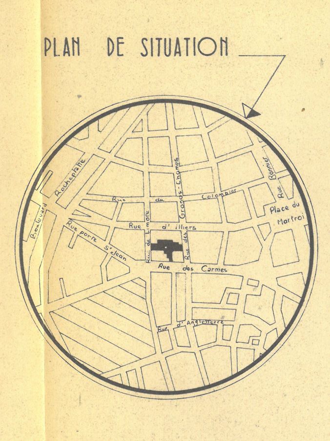 La construction de la nouvelle école implique le déménagement des 15 classes et ateliers dans des locaux provisoires. La superficie nécessaire est évaluée par la directrice à 1200 m2. En mars 1968, la Ville étudie la possibilité de louer les locaux de l’ancienne usine de confection Belleteste située en plein centre-ville. L’entrée principale est située 82 rue des Carmes, l’emprise du bâtit s’étend entre la rue de Limare et la rue des Grands-Champs.