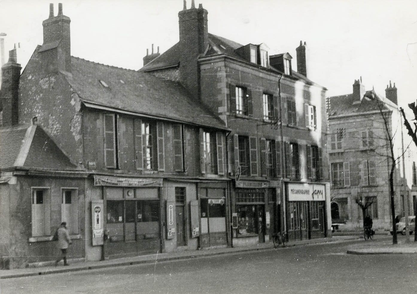 De gauche à droite : Café-bar et bureau de tabac Jacquet, 18, rue Dupanloup ; Mécanographe Japy, 16, rue Dupanloup ; Entrée de l’ancienne rue Monseigneur-de-Jarente qui donnait accès au Campo-Santo.