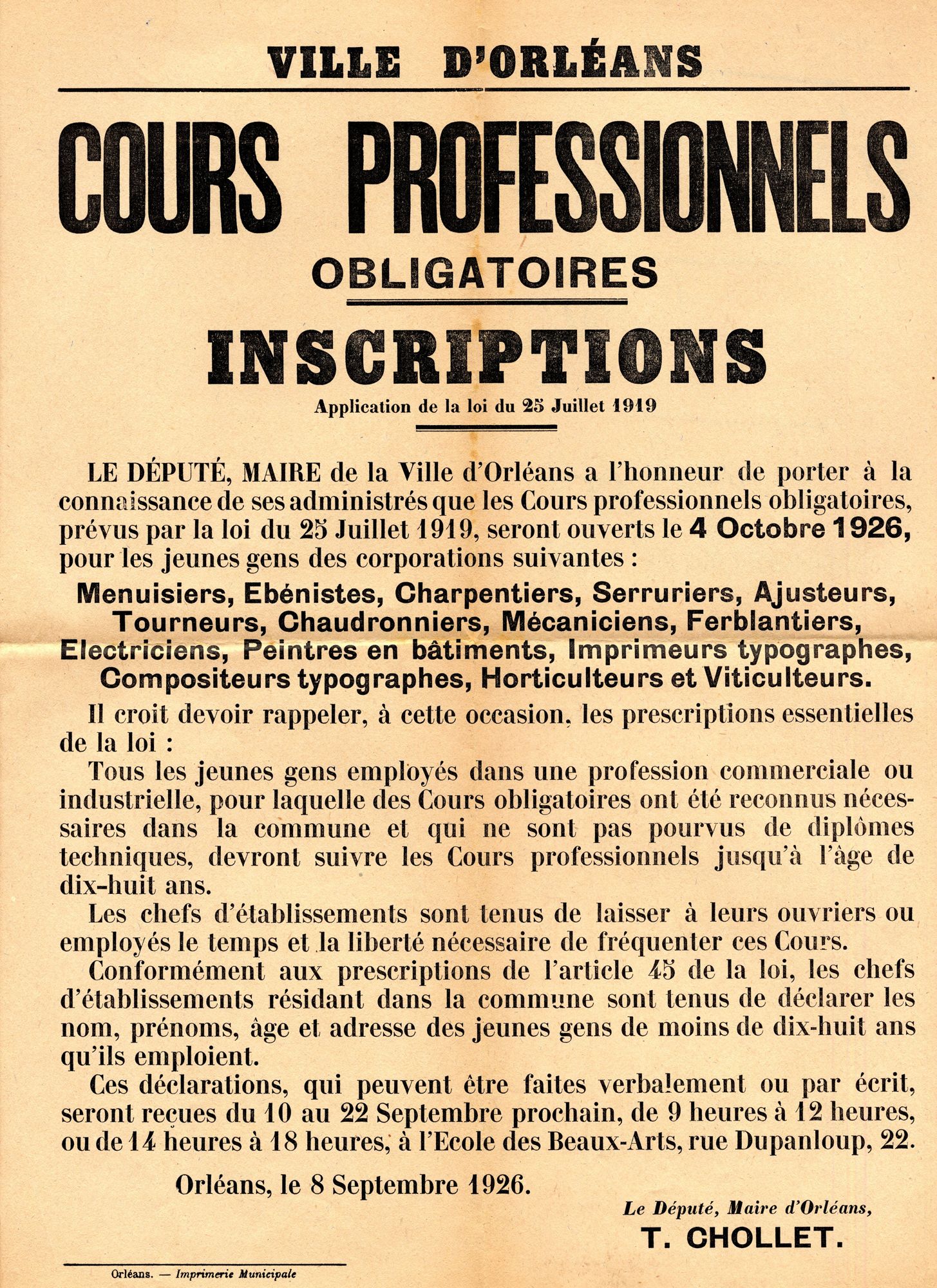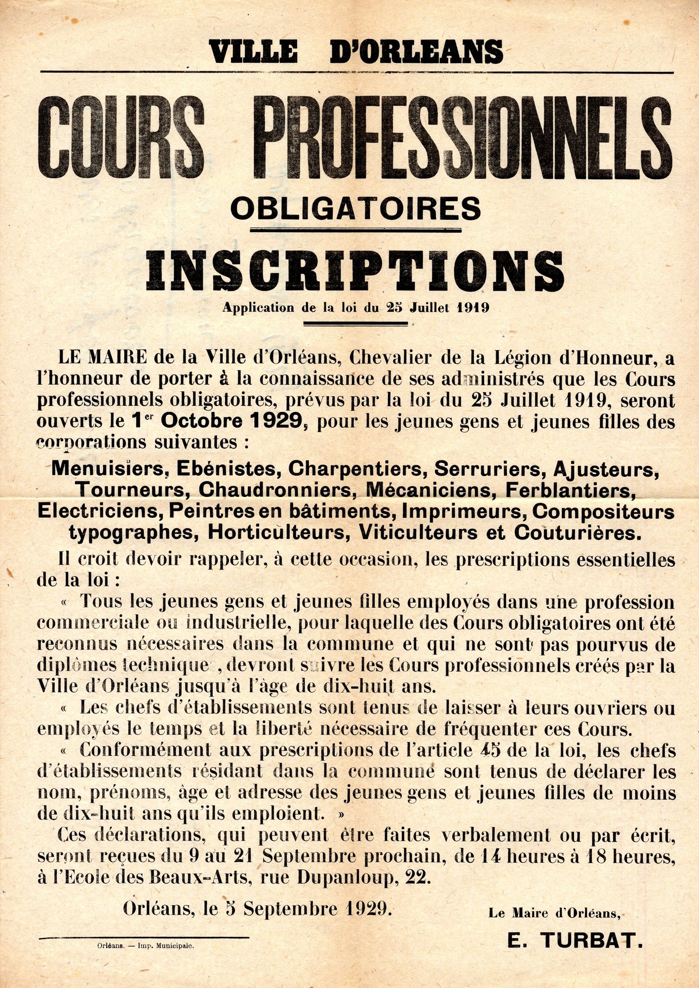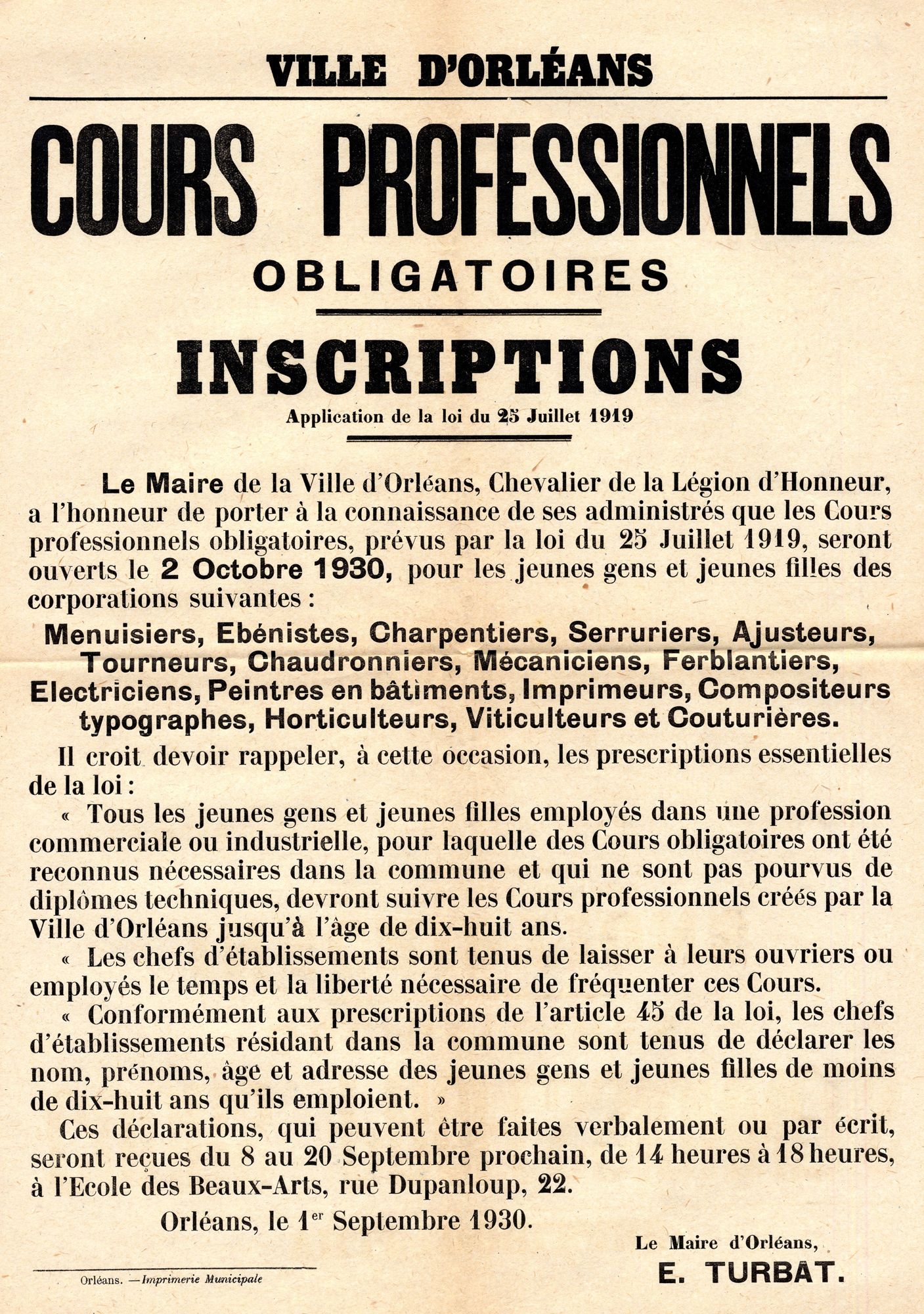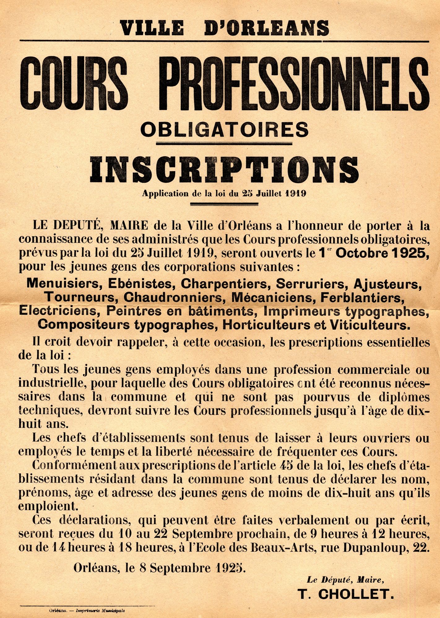 L'ouverture et l'évolution des cours au fil des affiches administratives : 1925-1972 L'ouverture et l'évolution des cours au fil des affiches administratives : 1925-1956 Cours professionnels obligatoires. Inscriptions. 1925. Affiche administrative. AMO, 15Fi2337 Cours professionnels obligatoires. Inscriptions. 1926. Affiche administrative. AMO, 15Fi2368 Cours professionnels obligatoires. Inscriptions. 1929. Affiche administrative. AMO, 15Fi2423 Cours professionnels obligatoires. Inscriptions. 1930. Affiche administrative. AMO, 15Fi2442 Ecole régionale gratuite des beaux-arts. Peinture, dessin, composition décorative, architecture, modelage, anatomie artistique. 1936. Affiche administrative. AMO, 15Fi2533 Cours professionnels obligatoires. Inscriptions. 1937. Affiche administrative. AMO, 1R1121 Ecole régionale gratuite des beaux-arts. Peinture, dessin, composition décorative, architecture, modelage, anatomie artistique. 1937. Affiche administrative. AMO, 15Fi2547 Ecole régionale gratuite des beaux-arts. Peinture, dessin, croquis, composition décorative, architecture, perspective, gravure, modelage, histoire de l'art. 1945. Affiche administrative. AMO, 15Fi2637 Ecole régionale gratuite des beaux-arts. Peinture, dessin, croquis, composition décorative, architecture, perspective, gravure, modelage, histoire de l'art. 1946. Affiche administrative. AMO, 15Fi2647 Ecole régionale gratuite des beaux-arts. Peinture, dessin, croquis, composition décorative, architecture, perspective, gravure, modelage, céramique, histoire de l'art. 1950. Affiche administrative. AMO, 15Fi2669 Ecole régionale gratuite des beaux-arts. Peinture, dessin, croquis, étude de nu, composition décorative, architecture, perspective, gravure, modelage, céramique, histoire de l'art. 1955. Affiche administrative. AMO, 15Fi2689 Ecole régionale gratuite des beaux-arts. Peinture, dessin, croquis, étude de nu, composition décorative, architecture, perspective, gravure, modelage, céramique, histoire de l'art, anatomie. 1956. Affiche administrative. AMO, 1R2041 Ecole régionale des beaux-arts d'Orléans. Enseignement-Admission. 1972. Affiche administrative. AMO, 1R2046 1 / 13