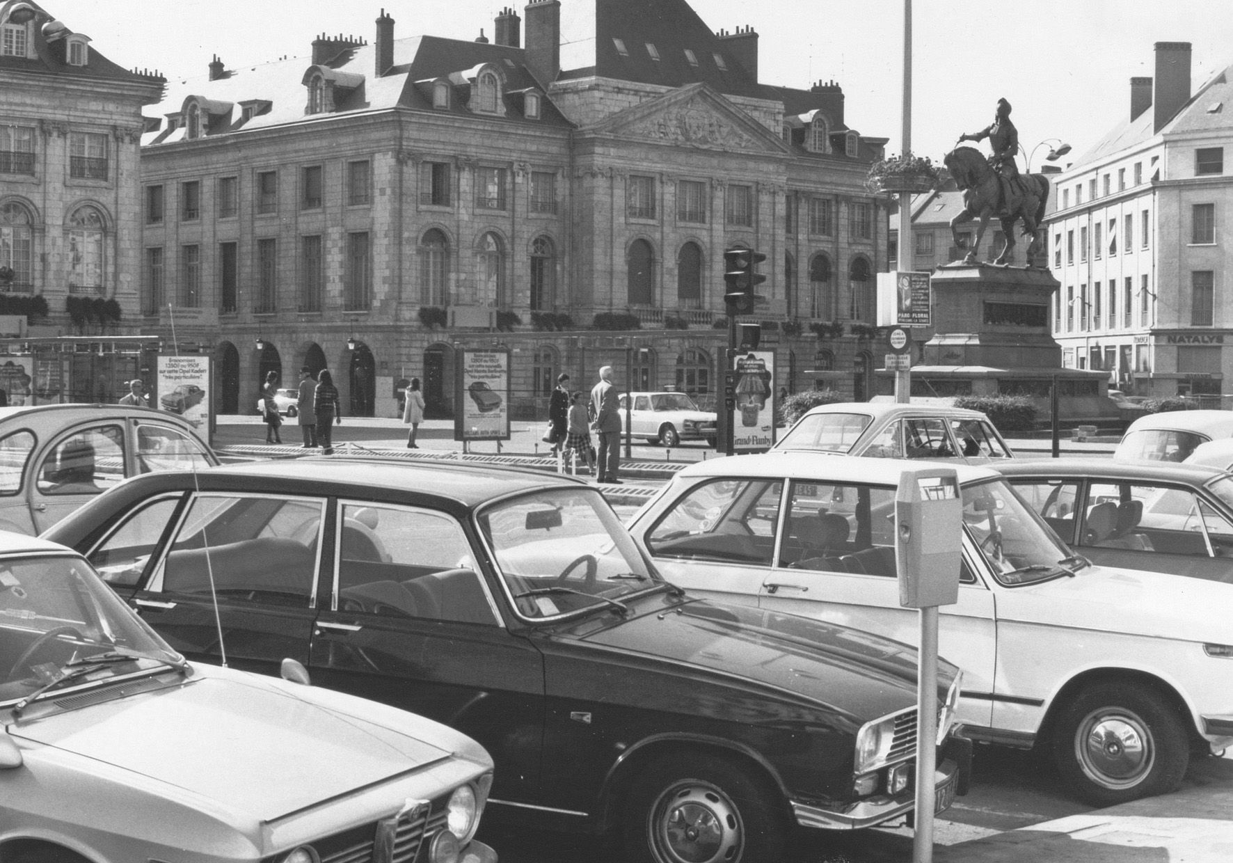 Au cours des années 70, la construction de parkings aériens et souterrains se généralise, le stationnement payant se met en place pour assurer une meilleure rotation des véhicules dans les rues. Les premiers parcmètres sont installés en 1971 pour accompagner le nouveau régime de circulation à sens unique institué rue Royale et rue du Cheval-Rouge.