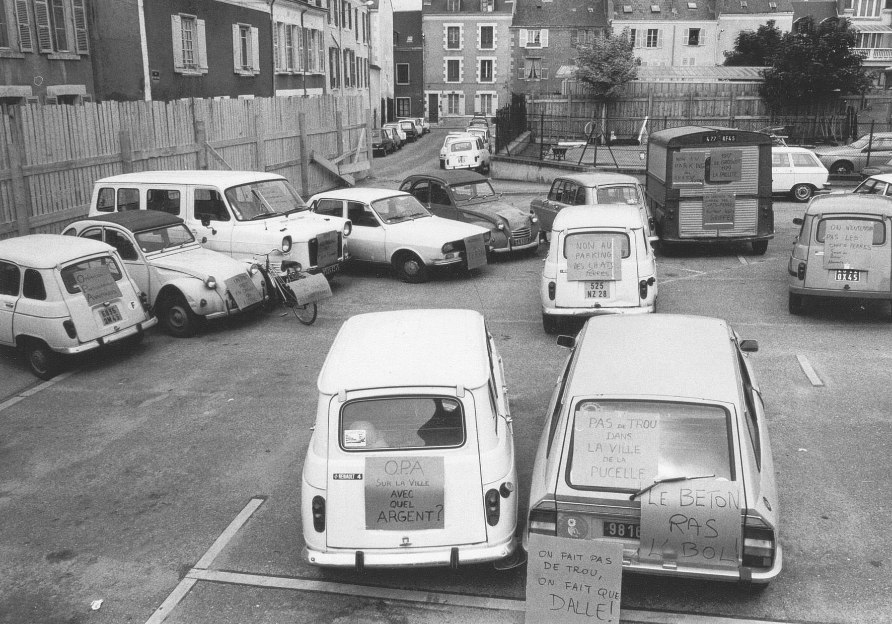 Un projet de parking de 400 places assorti d’un complexe de 20 mètres de hauteur est lancé aux Chats-Ferrés en 1975, contre l’avis des habitants représentés par leur Comité de quartier. A l’unanimité, tous veulent un jardin public sur l’îlot d’environ 2 000 mètres carrés laissé libre par la destruction des maisons en 1940. Le bras de fer avec la Ville devient une bataille juridique et va même aller jusqu’à la révolte, terme repris par La Tribune d'Orléans qui titre « La révolte des Chats-Ferrés » dans le numéro spécial N° 44 en 1979. Le projet est néanmoins conduit jusqu’à son terme malgré manifestations et occupations des lieux pour stopper les pelleteuses. Cette forte opposition au projet s’est exprimée jusqu’en 1979.