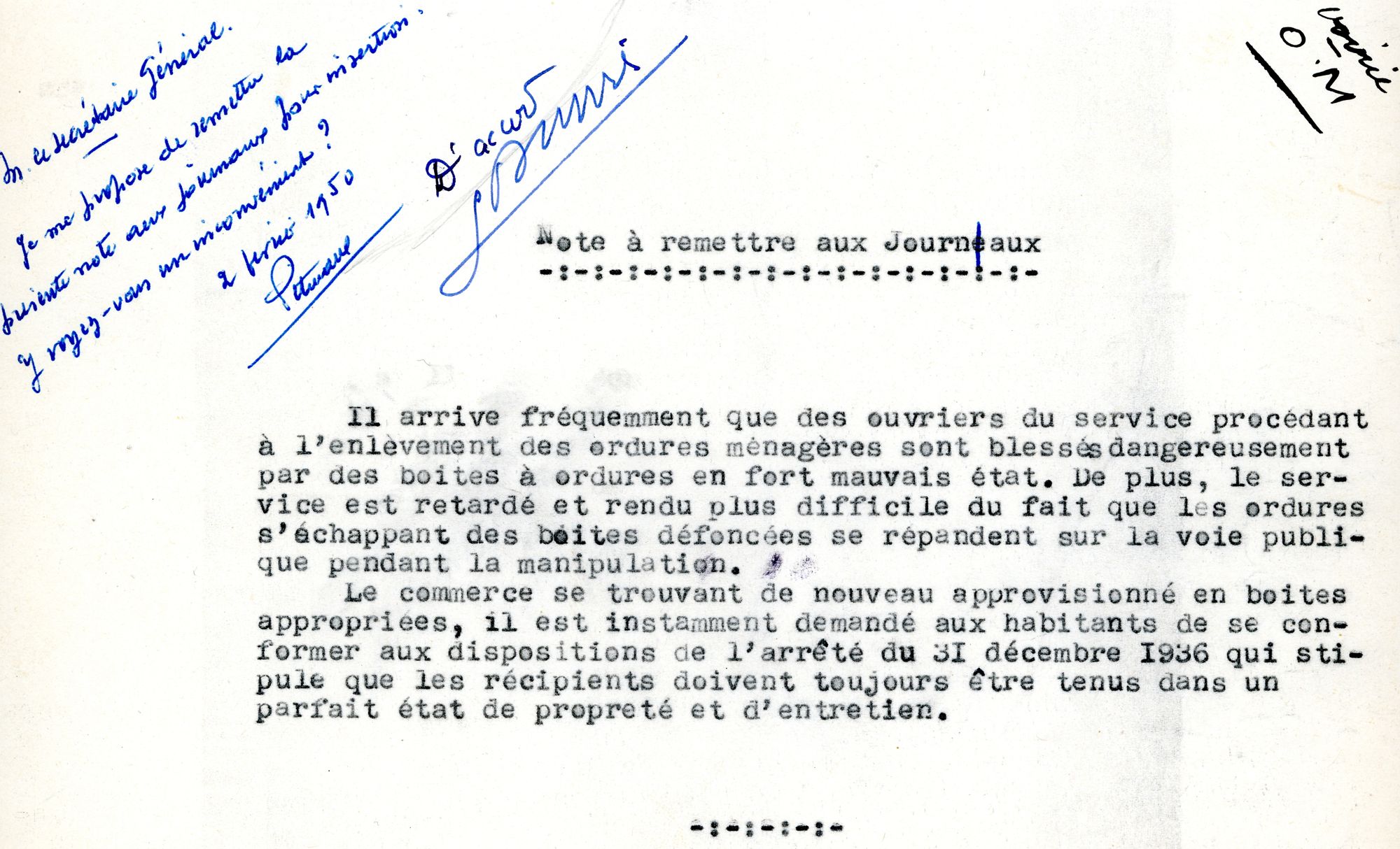 L’aménagement de locaux quai Barentin, en 1934, puis rue Hatton, en 1967, permet d’offrir des locaux équipés de vestiaires, douches et sanitaires. Sur le terrain, la mise en place de la collecte hermétique, dans les années 1970, est une avancée pour la réduction du port de charge et du contact avec les déchets.