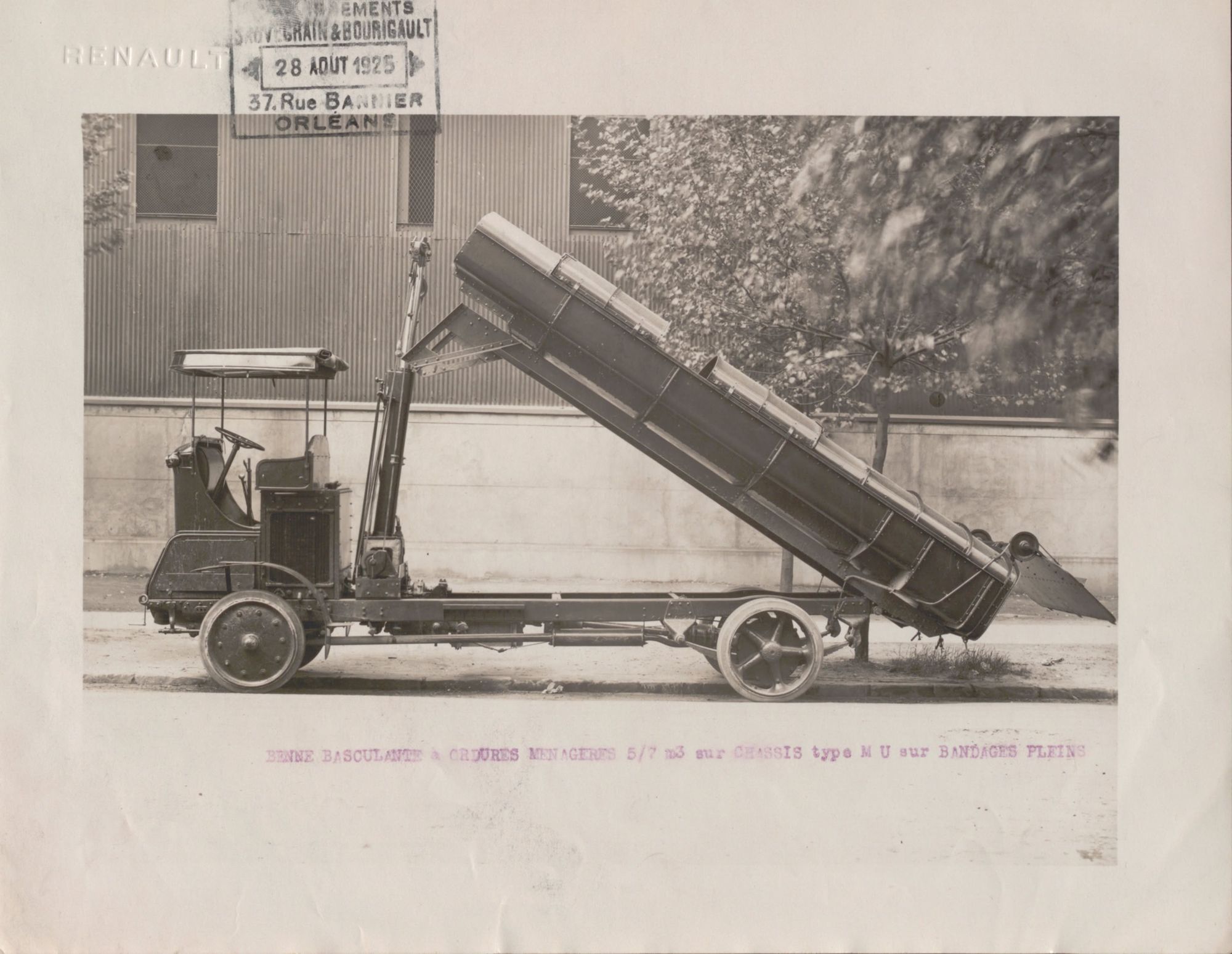 En 1925, un tombereau motorisé de 7 m3 de marque Renault et son conducteur sont mis à disposition par Sauvegrain et Bourigault, agents Renault à Orléans. En 1934, à côté de véhicules à essence, des camions électriques sont testés. En 1938, et après débat, un parc automobile électrique de 12 bennes est constitué en préférence à la solution thermique. Les déplacements à petites vitesses et silencieux avec une faible émission de gaz polluants sont les avantages retenus, en particulier au regard du centre-ville. Les bennes sont dotées d’un dispositif de compactage : chargés par l’arrière du véhicule, les déchets sont compressés à l’intérieur garantissant une collecte plus hygiénique et la possibilité de mettre plus de déchets par tournée. À l’inverse des tombereaux, elles sont fermées, évitant les pertes sur la chaussée. Elles sont aussi plus adaptées au déversement dans les canches et facilitent le travail des éboueurs.