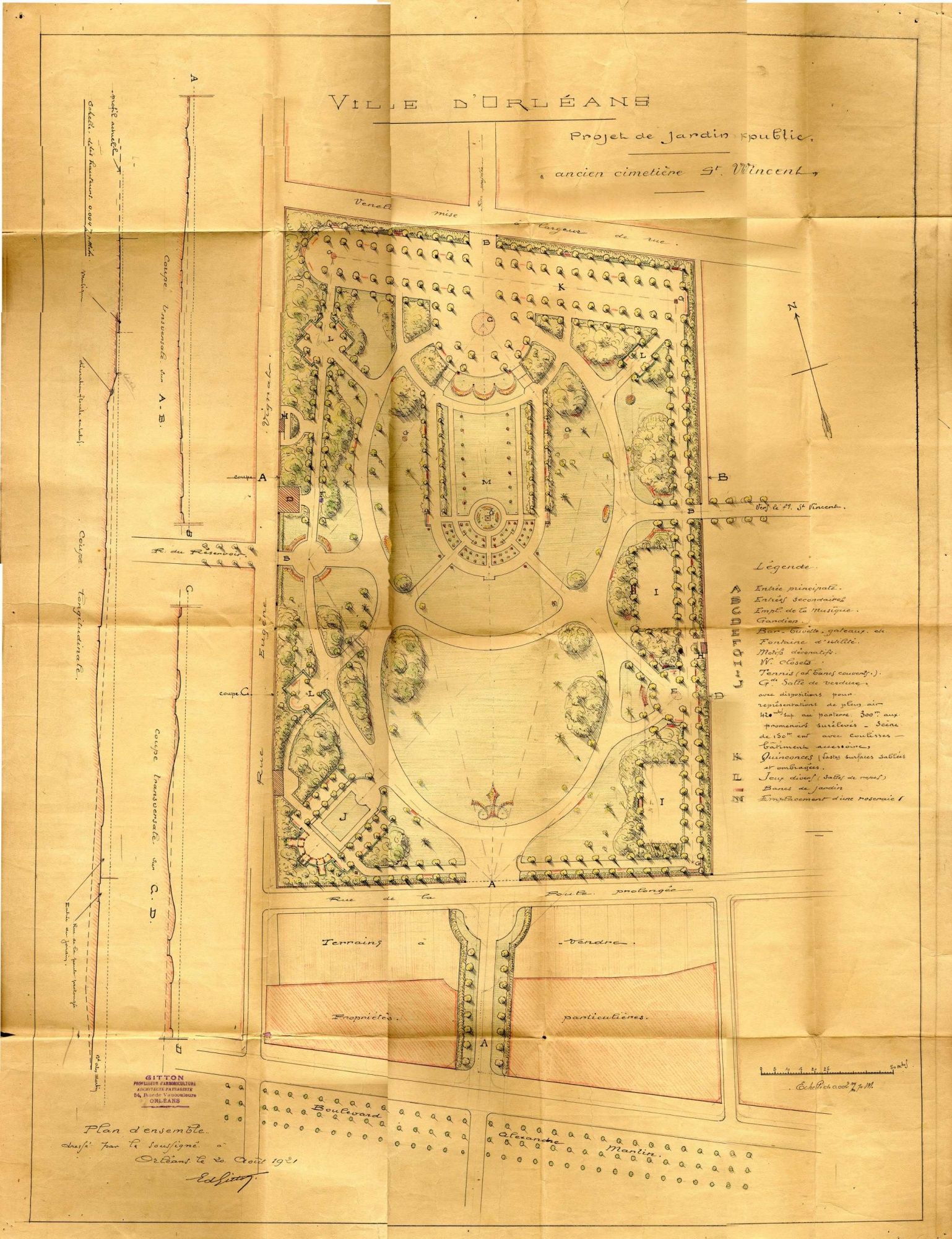 Dès 1913, il est envisagé de créer un parc public « à la campagne » c’est-à-dire au-delà des mails. Edouard Gitton, architecte-paysagiste orléanais, est désigné pour le concevoir. Les grands noms de l’horticulture orléanaise, tels qu’Eugène Turbat, Léon Chenault ou encore René Barbier, décident du choix des matériaux et des essences à implanter. Le parc a pour but de présenter une spécialité de décoration florale orléanaise en vogue depuis la fin du 19e siècle : la mosaïculture. Hormis les parterres de fleurs richement colorés, le promeneur y découvre, entre autres, des noyers d’Amérique ou encore des ginkgo bilobas.