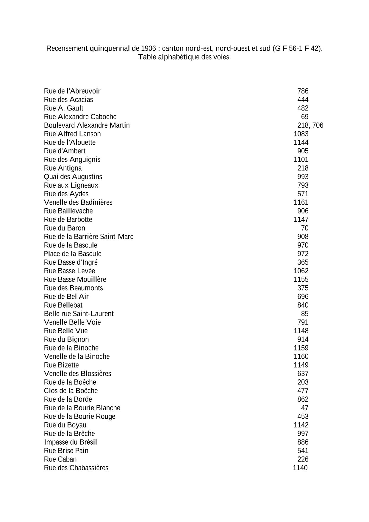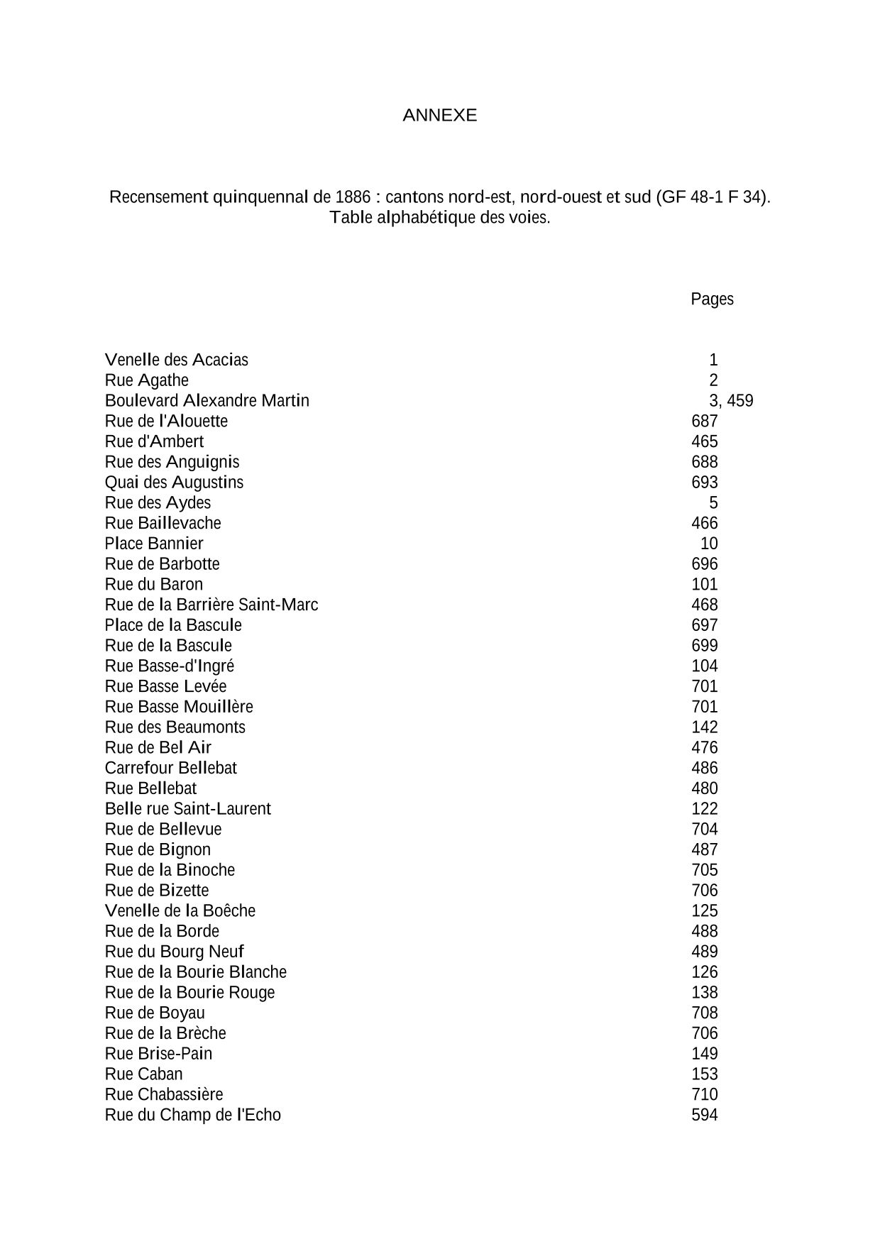 Il existe un recensement tous les 5 ans sauf en période guerre. Afin d'y trouver un individu, il faut obligatoirement déterminer le canton du domicile à partir du nom de la rue où l'individu habitait. Connaître l'adresse est donc la clé de toute recherche. Il y avait 5 cantons à Orléans : Est, Ouest, Nord-ouest, Nord-est et Sud.