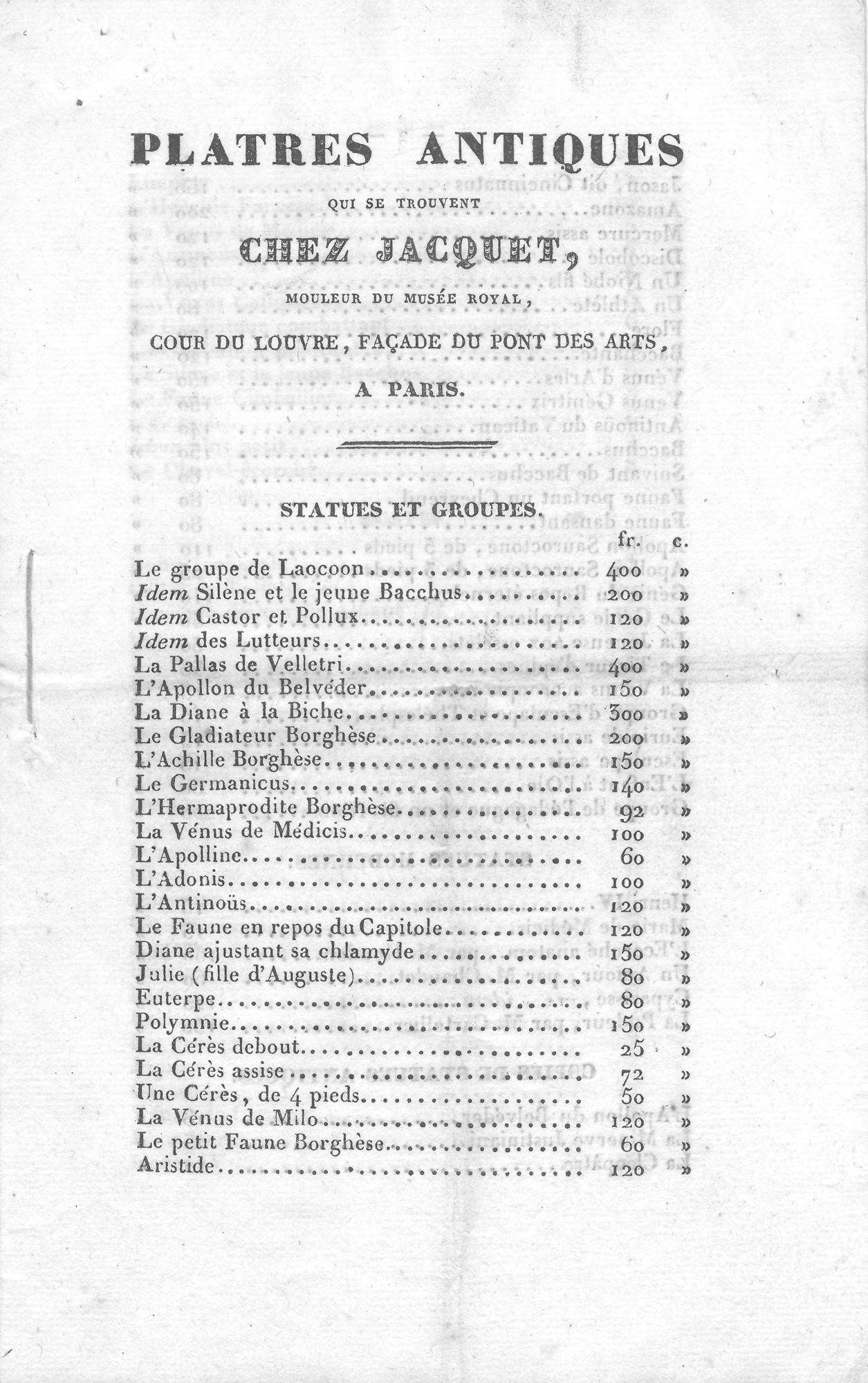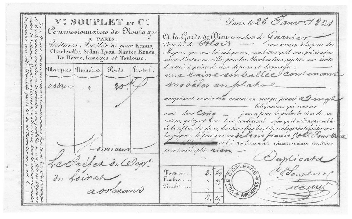 L'Etat participe notamment à la fourniture de modèles en plâtre en faveur des écoles de dessin, qui sont réalisés d'après les modèles du Musée du Louvre. Le conservateur des monuments français est chargé par le ministère de l'Intérieur de l'expédition de ces modèles. Au début du 19e siècle, c'est le roulage, service de voiture hippomobile, qui est utilisé pour le transport des marchandises.