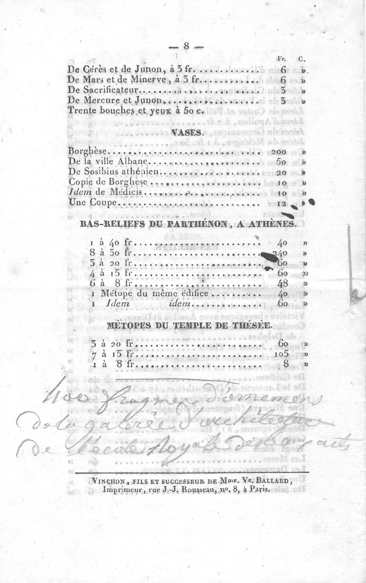 Constituée depuis les origines de l’école, une importante collection de moulages en plâtre, de dessins, d’ouvrages spécialisés, compose le matériel pédagogique qui est placé sous la responsabilité du concierge.